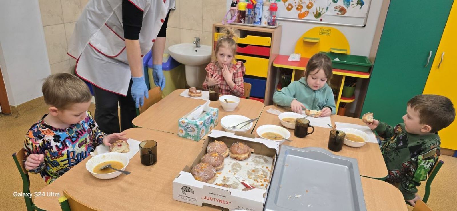 Tłusty Czwartek to jedno z najsmaczniejszych świąt w polskim kalendarzu. To dzień, w którym bez wyrzutów sumienia możemy zajadać się pączkami, faworkami i innymi słodkościami. W przedszkolu to doskonała okazja do wspólnej zabawy, poznawania tradycji i oczywiście – smakowania pysznych pączków oraz faworków. Tego dnia przedszkolaki dowiedziały się w prosty, ciekawy sposób, skąd się wzięło to święto i dlaczego w tym dniu jemy pączki. Najważniejszą częścią tego dnia było oczywiście wspólne jedzenie pączków. Był to dzień pełen radości i uśmiechu na twarzy😉.