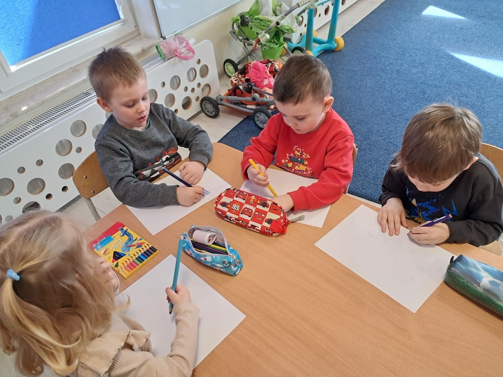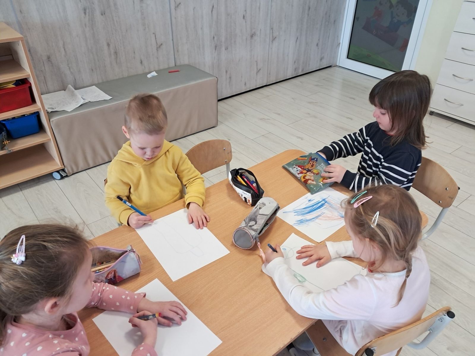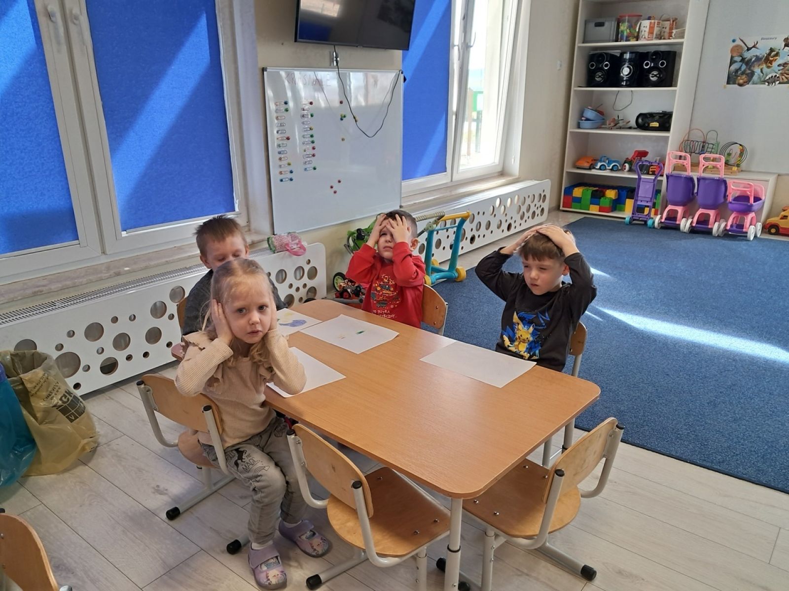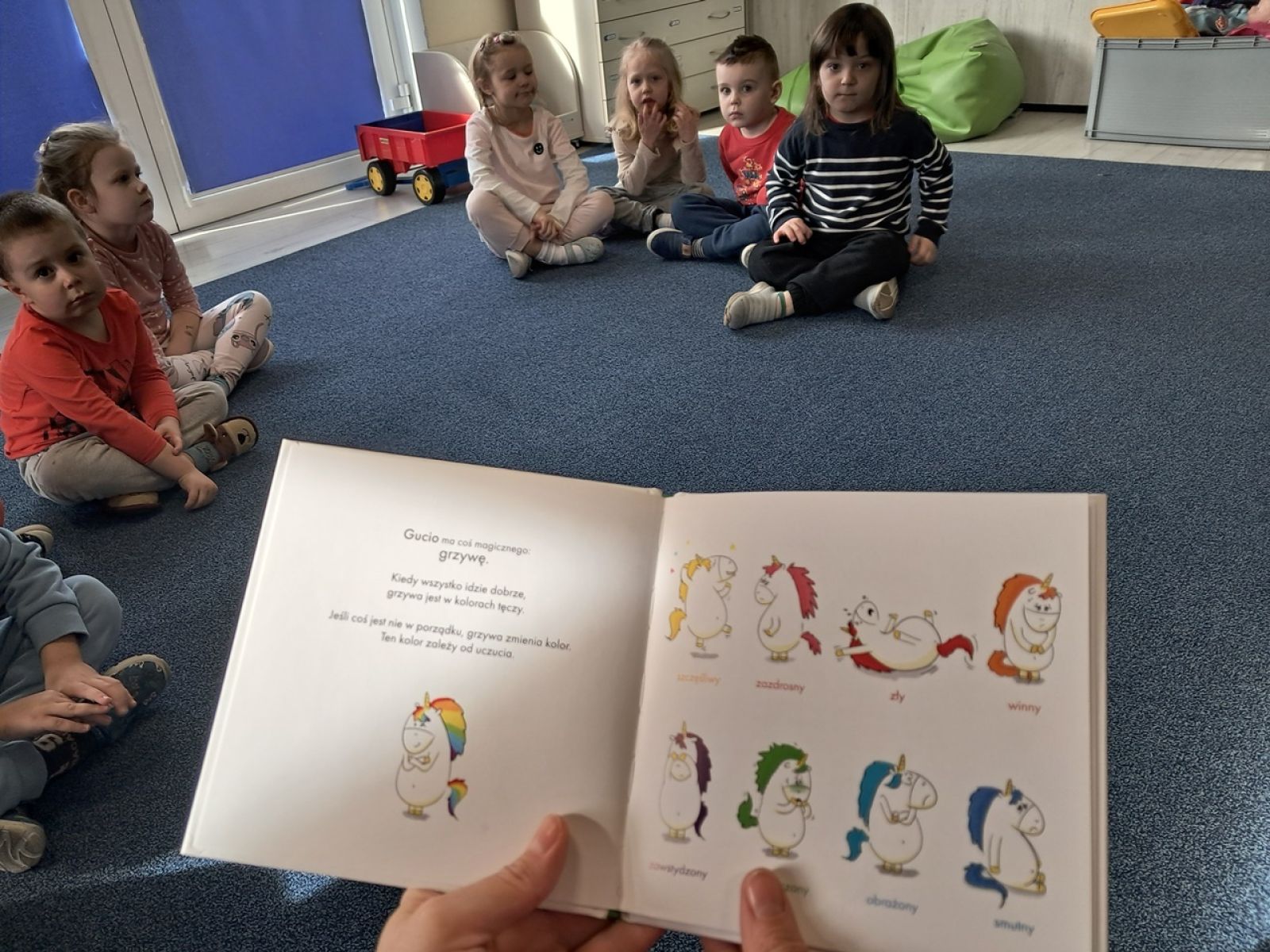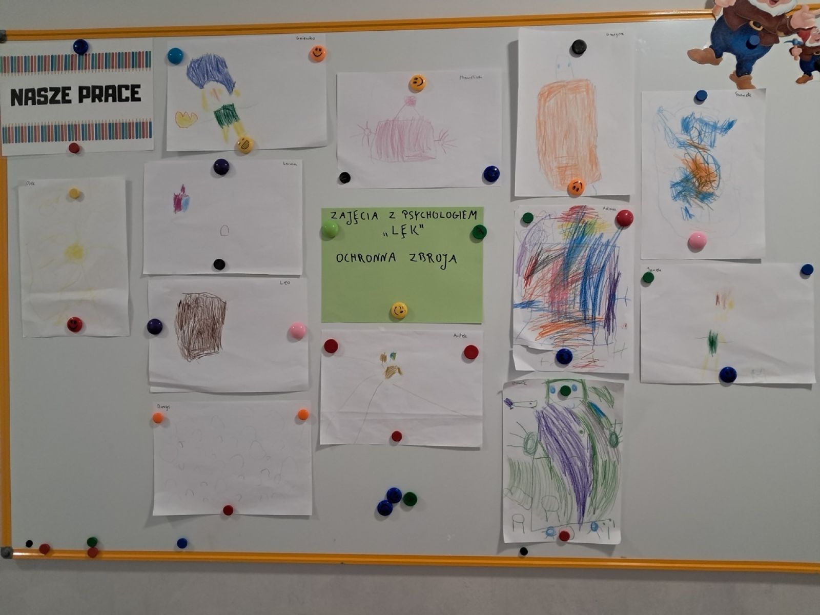 Nasze Krasnale kolejny raz odwiedziła Pani psycholog. Pani Ewa przeprowadziła z dziećmi zajęcia o emocjach. Tym razem rozmawialiśmy o lęku. W zrozumieniu naszych uczuć jak zawsze pomagał nam książkowy przyjaciel jednorożec Gucio. Dzieci wykonywały z Panią Psycholog ćwiczenia oddechowe, narysowały także wymyśloną przez siebie ochronną zbroję. Dzięki takim zajęciom dzieci uczą się odczytywać własne emocje a także rozumieją, że inni również je przeżywają. Dziękujemy Pani Ewie za odwiedziny i czekamy na następne zajęcia.