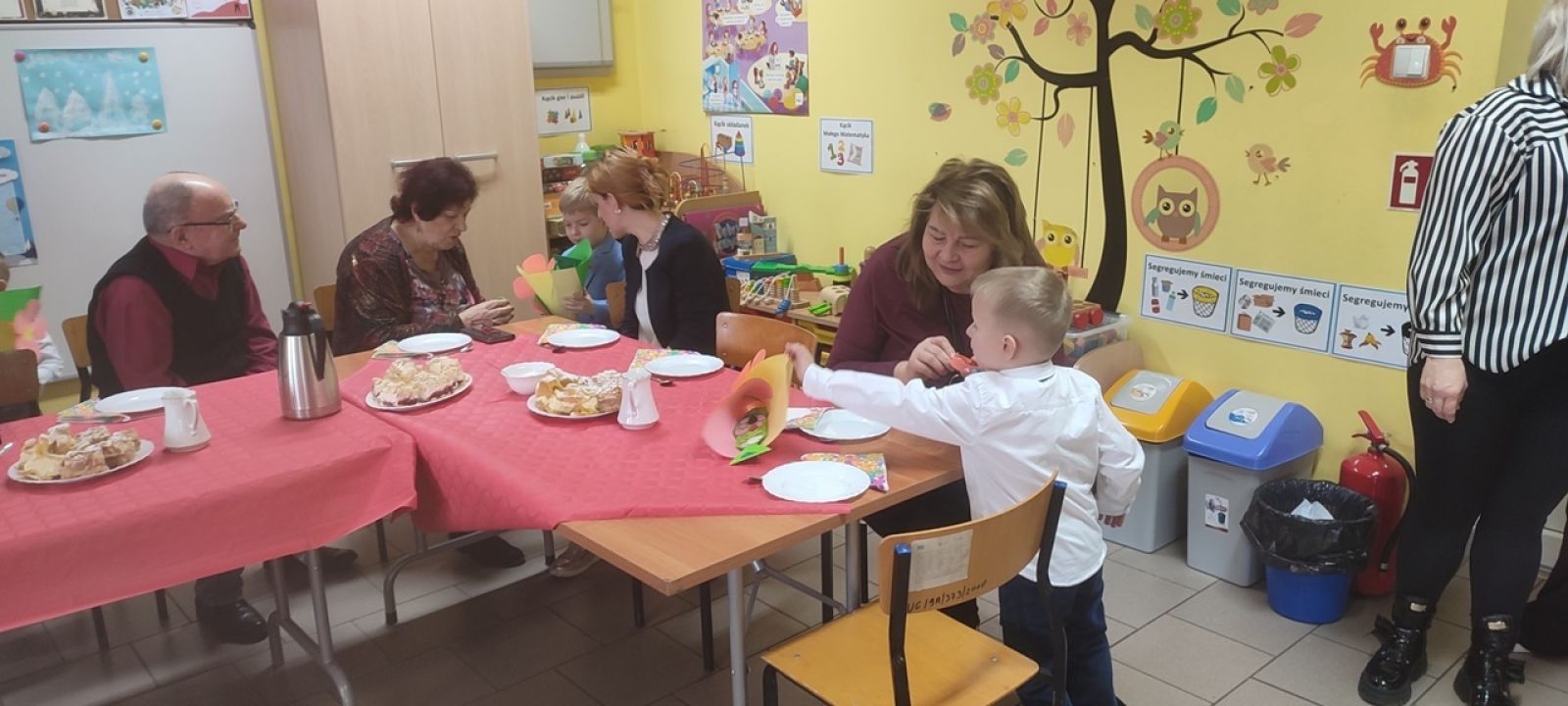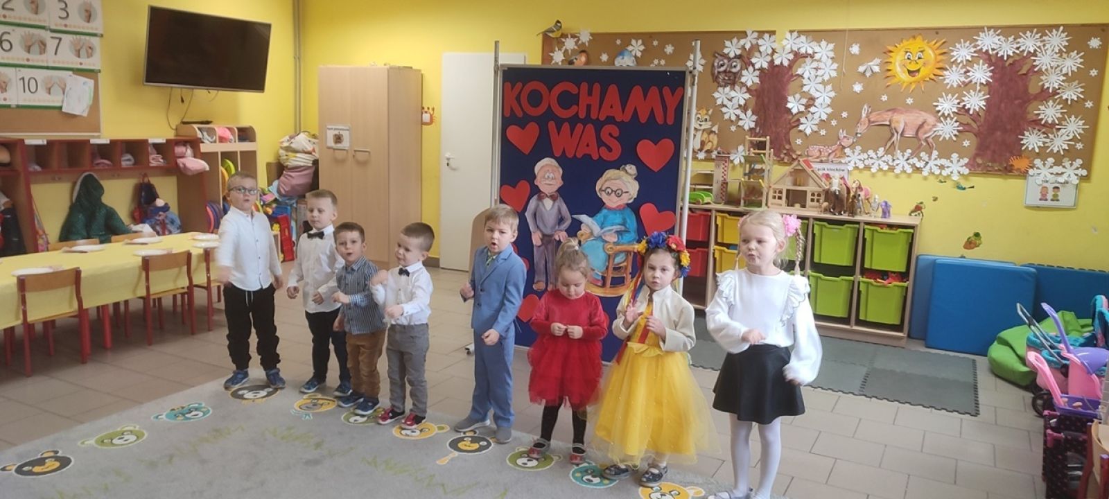 W grupie Jagódki odbyła się wyczekiwana uroczystość z okazji Dnia Babci i Dnia Dziadka. Przedszkolaki już od samego rana wyczekiwały spotkania z ukochanymi dziadkami. Powitały ich skoczną piosenką powitalną, którą dziadkowie nagrodzili gromkimi brawami. Dzieci wyrecytowały wiersze oraz zaśpiewały piosenki, wzbudzając wśród dziadków podziw oraz wywołując wzruszenie. Na zakończenie części artystycznej dzieci wręczyły własnoręcznie wykonane upominki. Po słodkim poczęstunku Pani Monika zaprosiła gości oraz dzieci do wspólnych pląsów oraz zabawy. To było bardzo udane spotkanie.