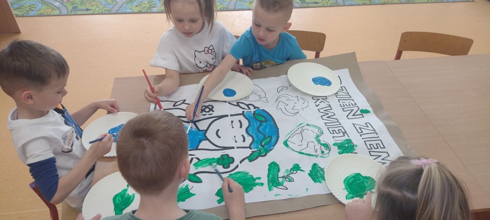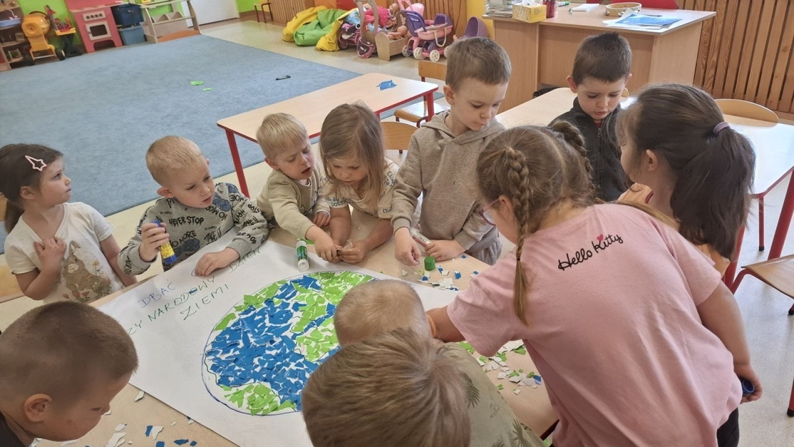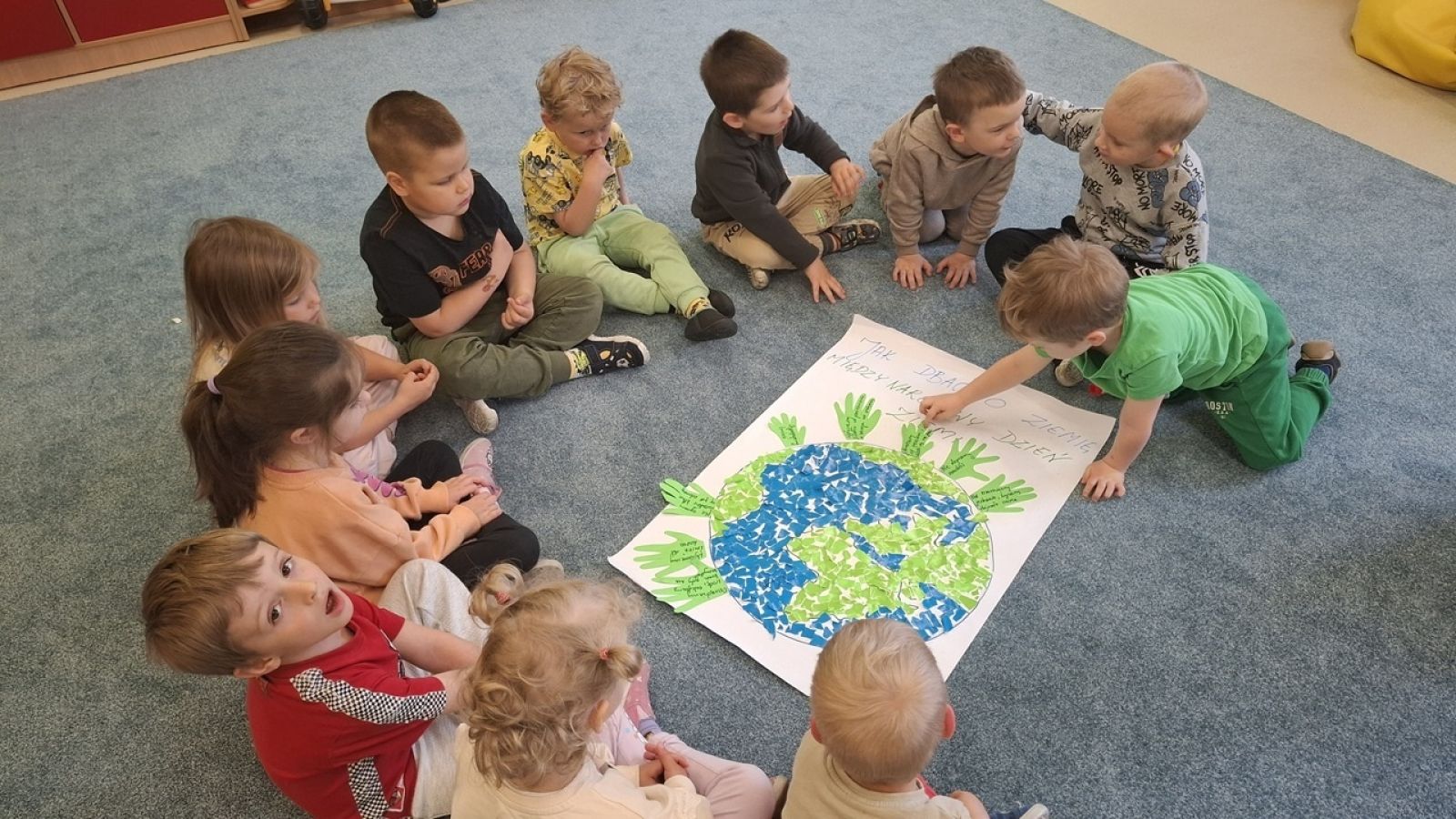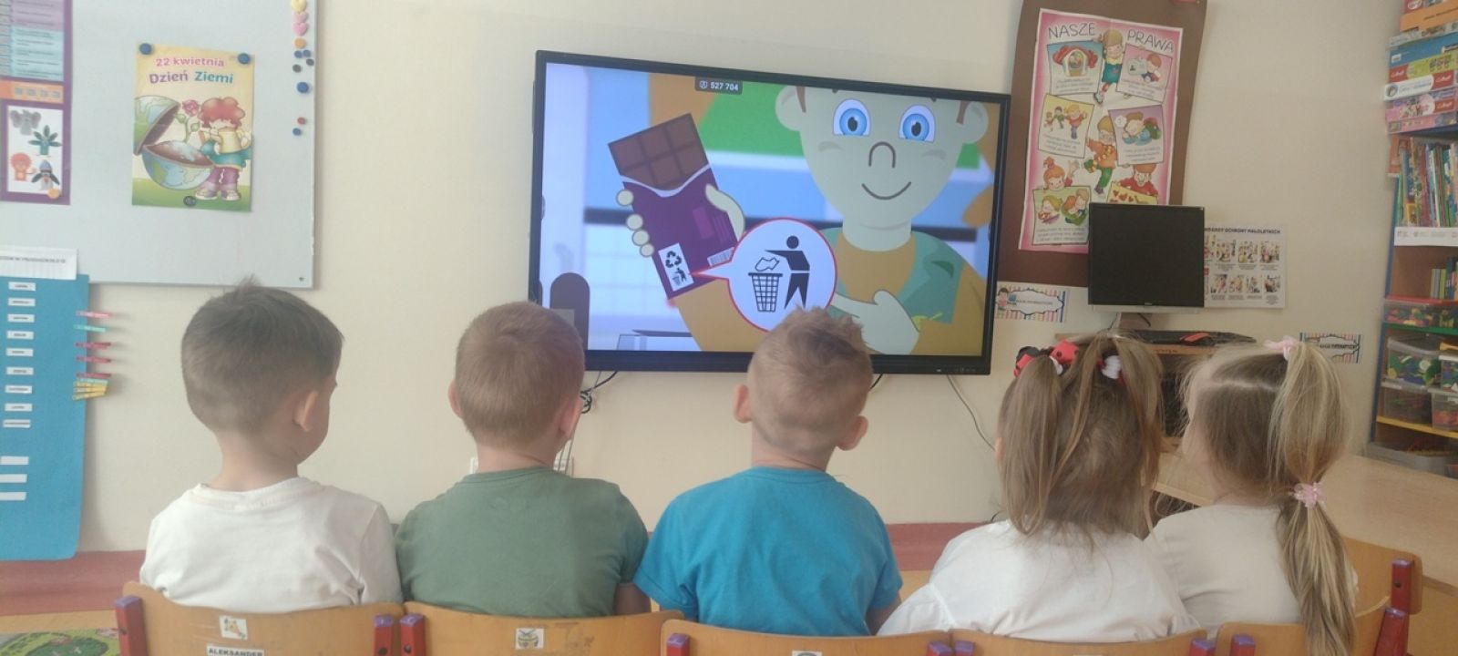 22 kwietnia nasze przedszkole wypełniła zielona energia i wyjątkowy klimat – obchodziliśmy Dzień Ziemi. To święto było doskonałą okazją do rozmów o ochronie środowiska oraz do nauki przez zabawę. Grupy Rybki, Motylki, Pszczółki i Jagódki z wielkim entuzjazmem zaangażowały się w szereg ekologicznych działań. Dzieci malowały plakaty ekologiczne oraz podczas zajęć utrwalały wiedzę na temat segregacji odpadów. Przedszkolaki z pomocą Pań przypomniały sobie, co powinno trafić do którego pojemnika i dlaczego recykling jest tak ważny. Zabawa w sortowanie śmieci była nie tylko edukacyjna, ale i bardzo angażująca – maluchy świetnie poradziły sobie z zadaniami. W każdej z grup dzieci obejrzały prezentacje multimedialne oraz bajki edukacyjne o tematyce ekologicznej. Materiały w przystępny sposób przybliżyły najmłodszym, jak dbać o lasy, rzeki, powietrze i zwierzęta. Dzięki ciekawym obrazkom i opowieściom dzieci lepiej zrozumiały, jakie znaczenie mają codzienne, nawet najmniejsze działania w trosce o naszą planetę. Dzień Ziemi w naszym przedszkolu był pełen radości, kolorów i wartościowych treści. Dzieci nie tylko świetnie się bawiły, ale też nauczyły się, że każdy z nas – bez względu na wiek – może być przyjacielem Ziemi.