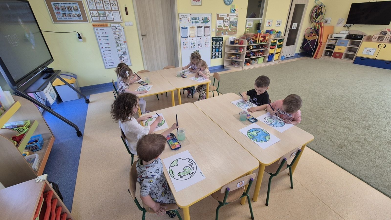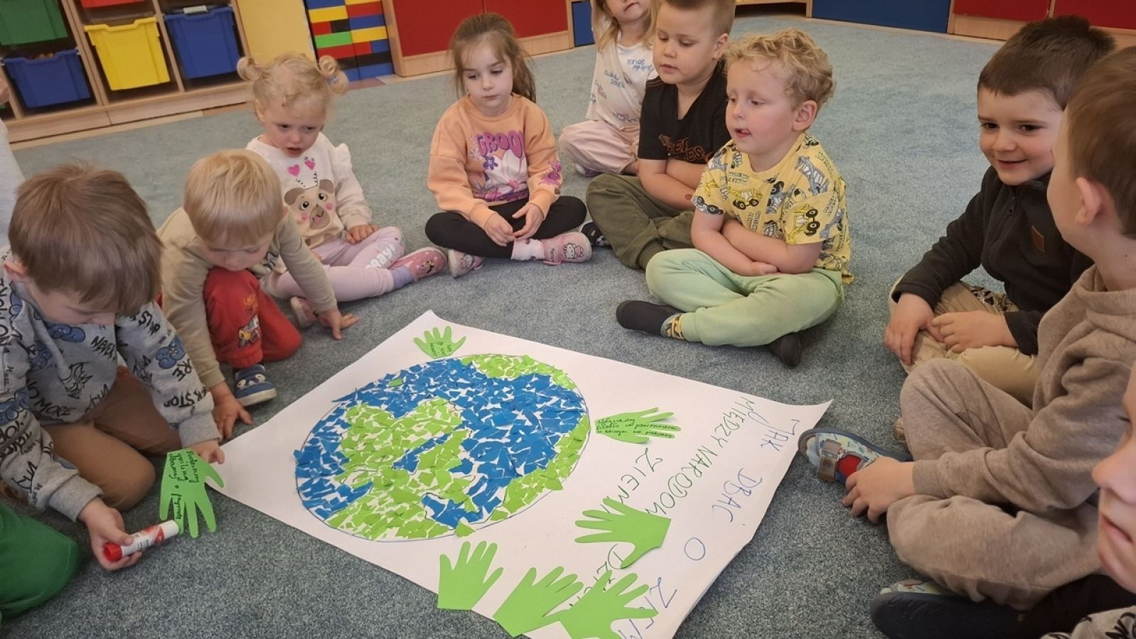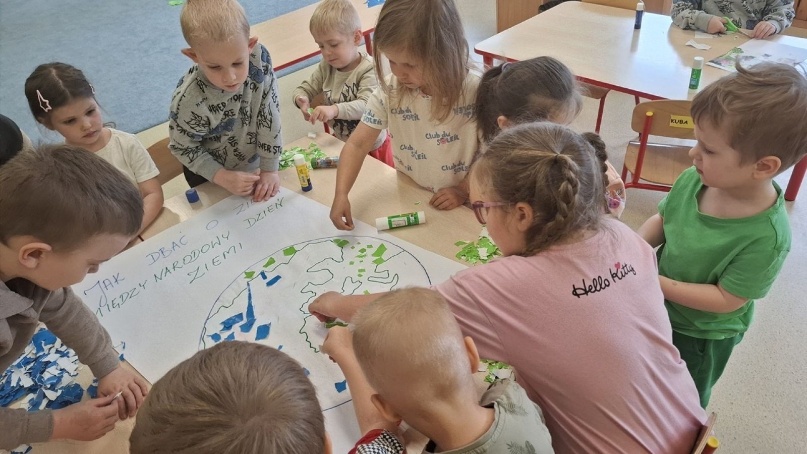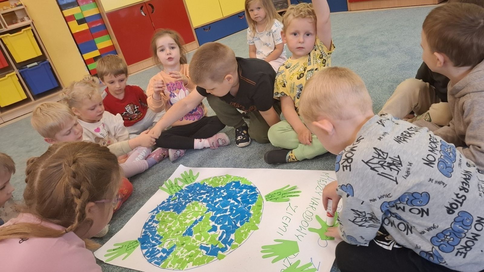 22 kwietnia nasze przedszkole wypełniła zielona energia i wyjątkowy klimat – obchodziliśmy Dzień Ziemi. To święto było doskonałą okazją do rozmów o ochronie środowiska oraz do nauki przez zabawę. Grupy Rybki, Motylki, Pszczółki i Jagódki z wielkim entuzjazmem zaangażowały się w szereg ekologicznych działań. Dzieci malowały plakaty ekologiczne oraz podczas zajęć utrwalały wiedzę na temat segregacji odpadów. Przedszkolaki z pomocą Pań przypomniały sobie, co powinno trafić do którego pojemnika i dlaczego recykling jest tak ważny. Zabawa w sortowanie śmieci była nie tylko edukacyjna, ale i bardzo angażująca – maluchy świetnie poradziły sobie z zadaniami. W każdej z grup dzieci obejrzały prezentacje multimedialne oraz bajki edukacyjne o tematyce ekologicznej. Materiały w przystępny sposób przybliżyły najmłodszym, jak dbać o lasy, rzeki, powietrze i zwierzęta. Dzięki ciekawym obrazkom i opowieściom dzieci lepiej zrozumiały, jakie znaczenie mają codzienne, nawet najmniejsze działania w trosce o naszą planetę. Dzień Ziemi w naszym przedszkolu był pełen radości, kolorów i wartościowych treści. Dzieci nie tylko świetnie się bawiły, ale też nauczyły się, że każdy z nas – bez względu na wiek – może być przyjacielem Ziemi.