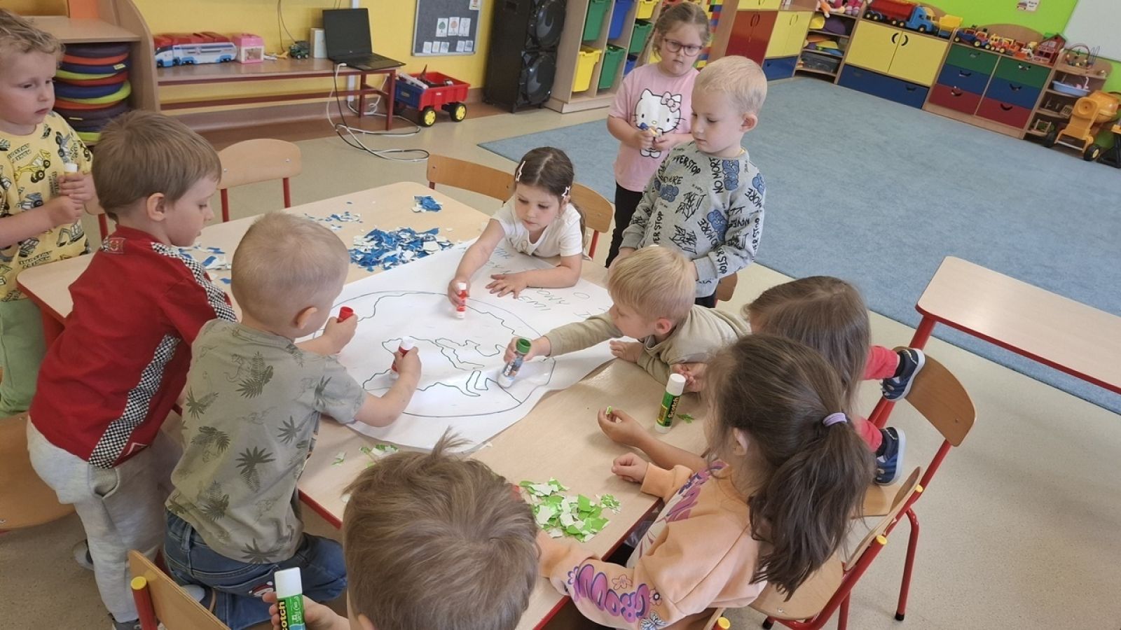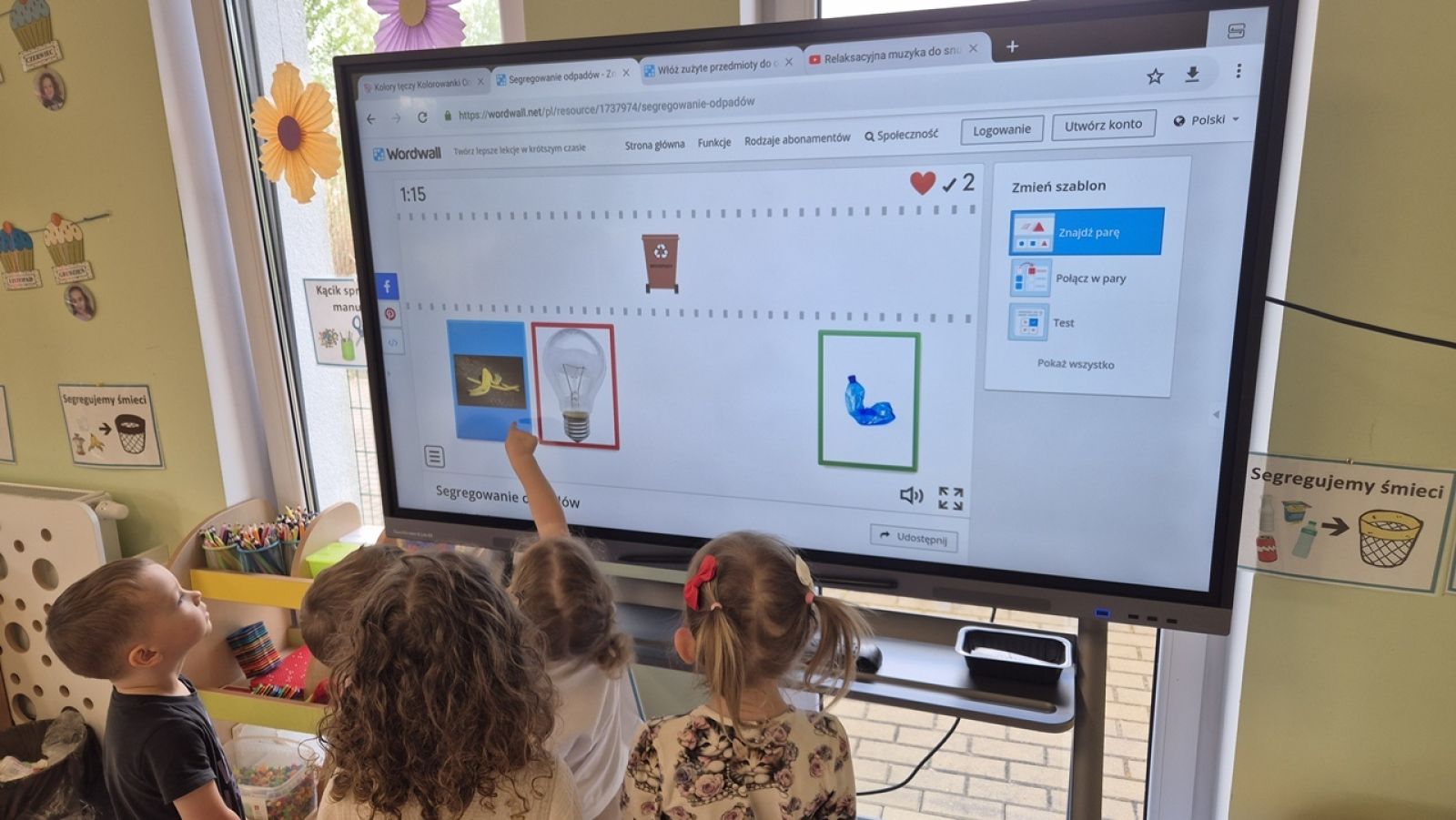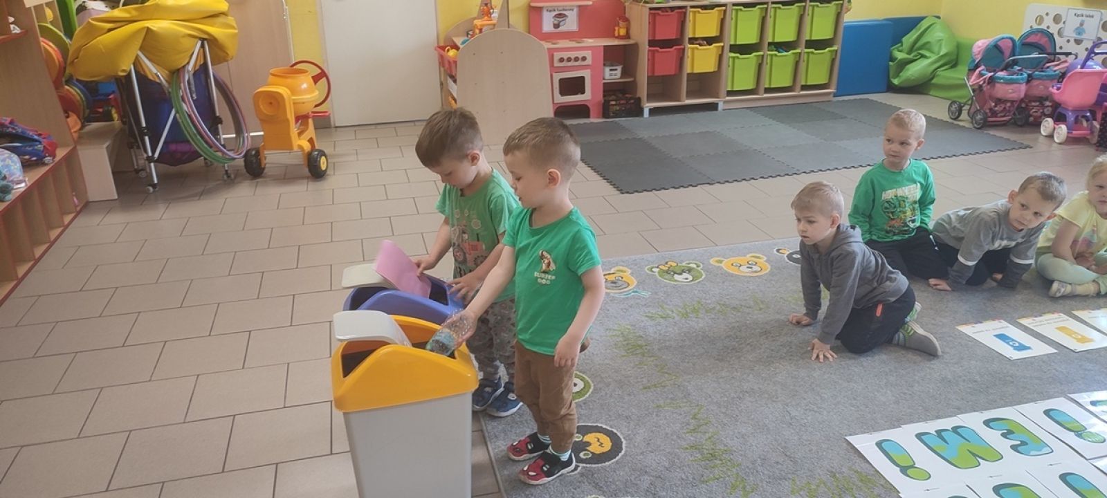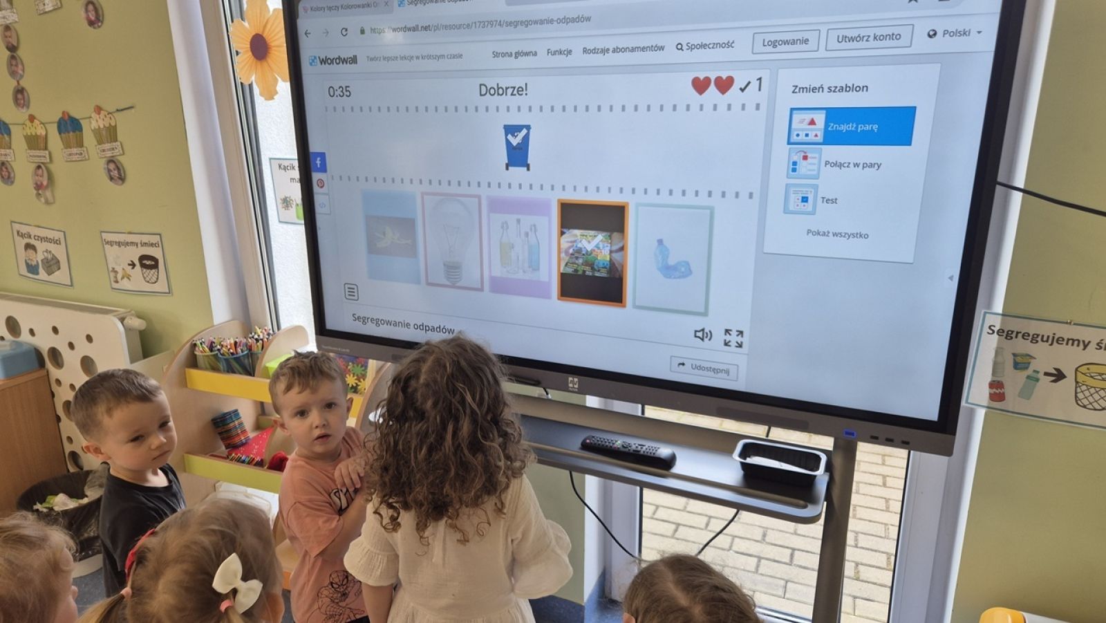 22 kwietnia nasze przedszkole wypełniła zielona energia i wyjątkowy klimat – obchodziliśmy Dzień Ziemi. To święto było doskonałą okazją do rozmów o ochronie środowiska oraz do nauki przez zabawę. Grupy Rybki, Motylki, Pszczółki i Jagódki z wielkim entuzjazmem zaangażowały się w szereg ekologicznych działań. Dzieci malowały plakaty ekologiczne oraz podczas zajęć utrwalały wiedzę na temat segregacji odpadów. Przedszkolaki z pomocą Pań przypomniały sobie, co powinno trafić do którego pojemnika i dlaczego recykling jest tak ważny. Zabawa w sortowanie śmieci była nie tylko edukacyjna, ale i bardzo angażująca – maluchy świetnie poradziły sobie z zadaniami. W każdej z grup dzieci obejrzały prezentacje multimedialne oraz bajki edukacyjne o tematyce ekologicznej. Materiały w przystępny sposób przybliżyły najmłodszym, jak dbać o lasy, rzeki, powietrze i zwierzęta. Dzięki ciekawym obrazkom i opowieściom dzieci lepiej zrozumiały, jakie znaczenie mają codzienne, nawet najmniejsze działania w trosce o naszą planetę. Dzień Ziemi w naszym przedszkolu był pełen radości, kolorów i wartościowych treści. Dzieci nie tylko świetnie się bawiły, ale też nauczyły się, że każdy z nas – bez względu na wiek – może być przyjacielem Ziemi.