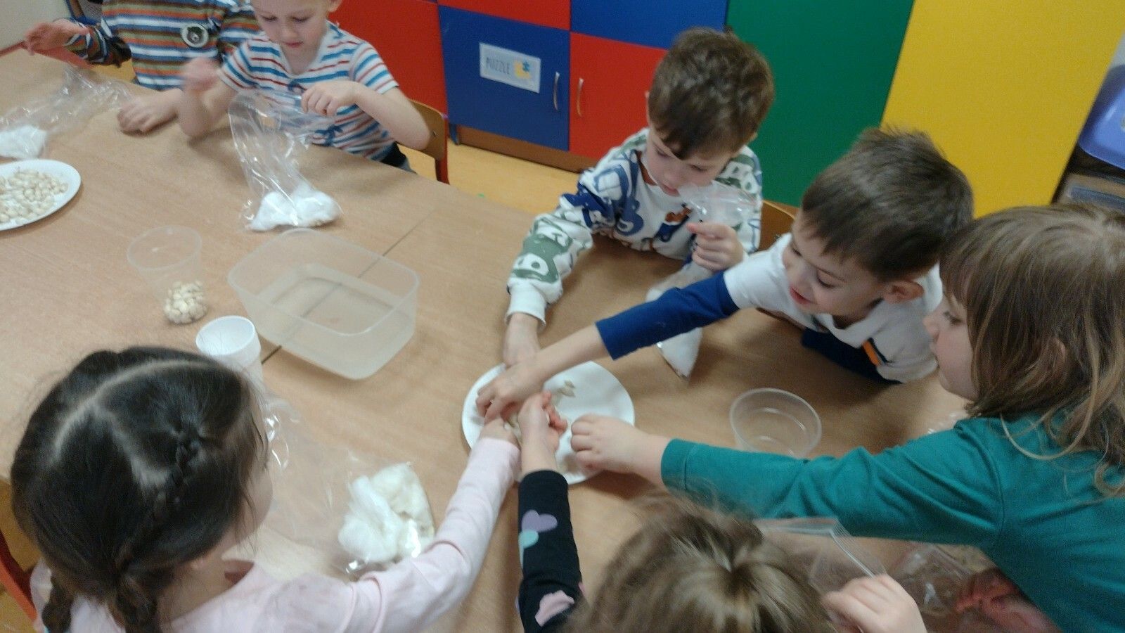 Wiosna to czas pełen zmian i cudów natury! W naszym przedszkolu, w ramach wiosennego tygodnia tematycznego, dzieci miały okazję założyć własną hodowlę roślin. Wszyscy zaangażowali się w fascynujący proces, który na pewno dostarczy im mnóstwo radości i wiedzy o tym, jak rośliny rosną i rozwijają się. Zajęcia rozpoczęliśmy od przygotowania dla każdego dziecka woreczka strunowego, do którego każde z nich włożyło watę, aby stworzyć odpowiednie podłoże. Następnie maluchy wlały odrobinę wody i posadziły nasiona fasoli oraz cebulki dymki. Wszyscy byli podekscytowani, myśląc o tym, jak ich rośliny będą się rozwijać! Po przygotowaniu swoich miniogrodów, dzieci przyklejały woreczki do okna, aby zapewnić roślinom dostęp do światła, które jest niezbędne do ich wzrostu. Takie zajęcia to doskonała okazja, aby maluchy nauczyły się cierpliwości oraz umiejętności systematycznego obserwowania przyrody. Każdego dnia dzieci będą prowadzić obserwacje – patrzeć, jak ich rośliny rosną i zmieniają się na ich oczach. Efekty pracy są już widoczne, a maluchy z radością śledzą, jak pojawiają się pierwsze kiełki i korzonki. Zakładanie wiosennej hodowli to świetna zabawa, która nie tylko rozwija zainteresowanie przyrodą, ale także wspiera umiejętności motoryczne, edukację ekologiczną i wprowadza dzieci w świat nauki w sposób prosty i zrozumiały. Jesteśmy pewni, że nasza hodowla wiosenna dostarczy maluchom wielu radości i pozytywnych emocji!