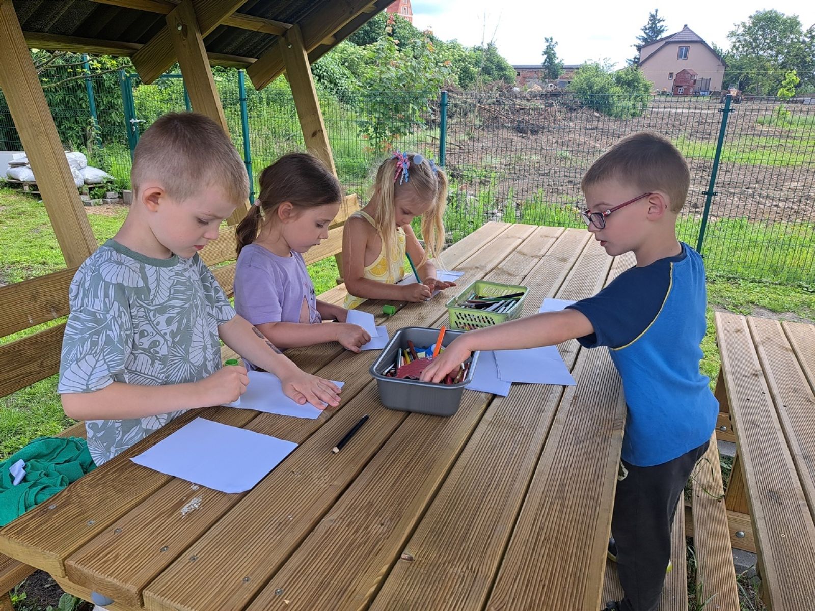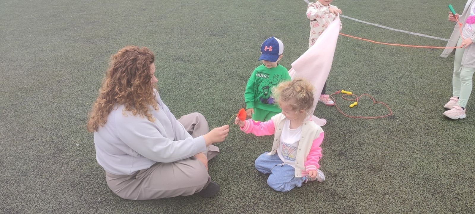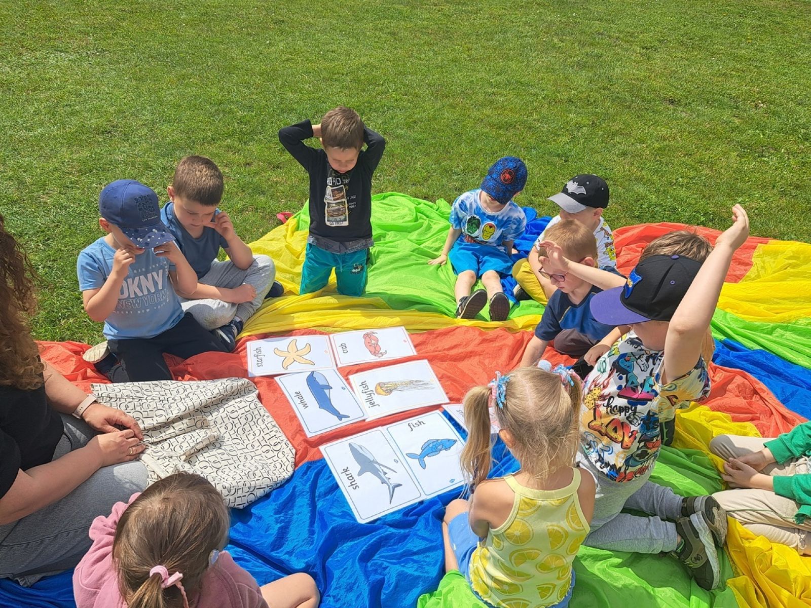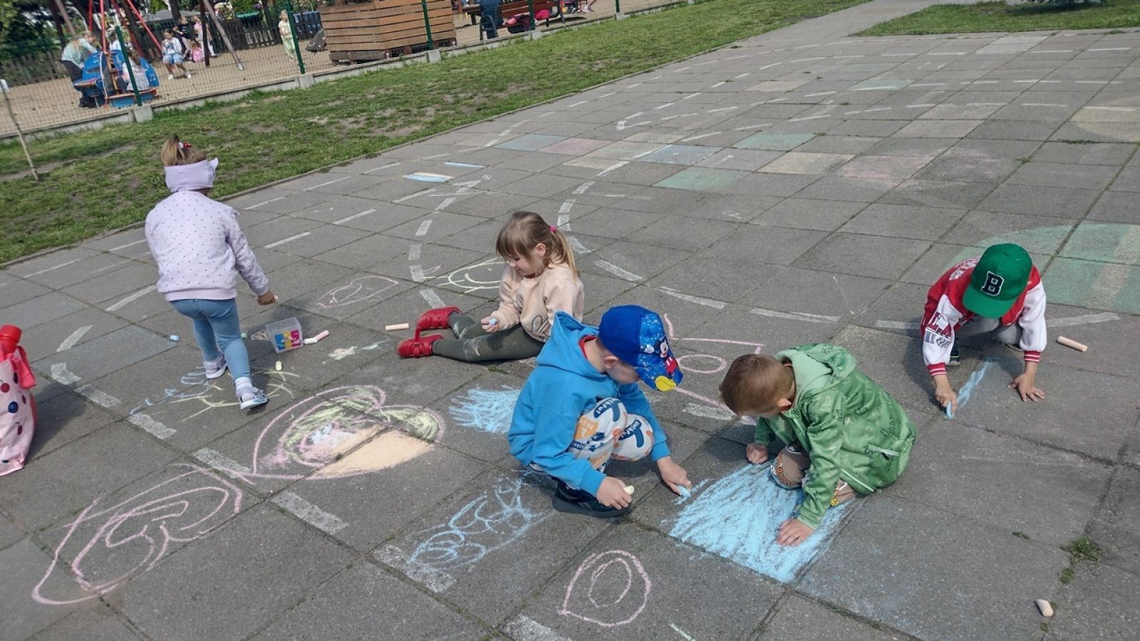 Dzieci uczestniczyły w różnorodnych aktywnościach: obserwacjach przyrodniczych, zabawach ruchowych, rysowaniu kredą, a także wspólnym czytaniu bajek. Pogoda dopisała, a uśmiechom nie było końca!