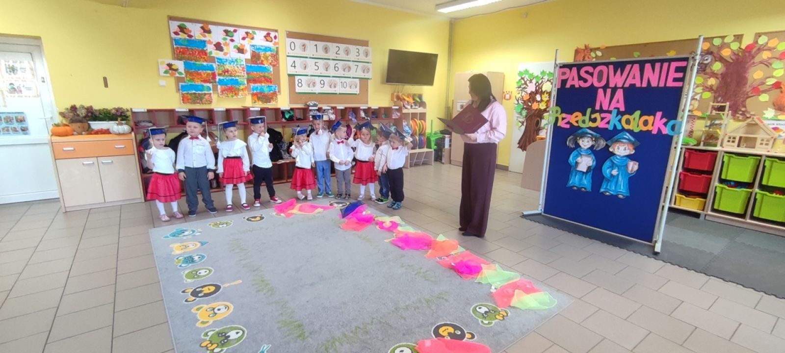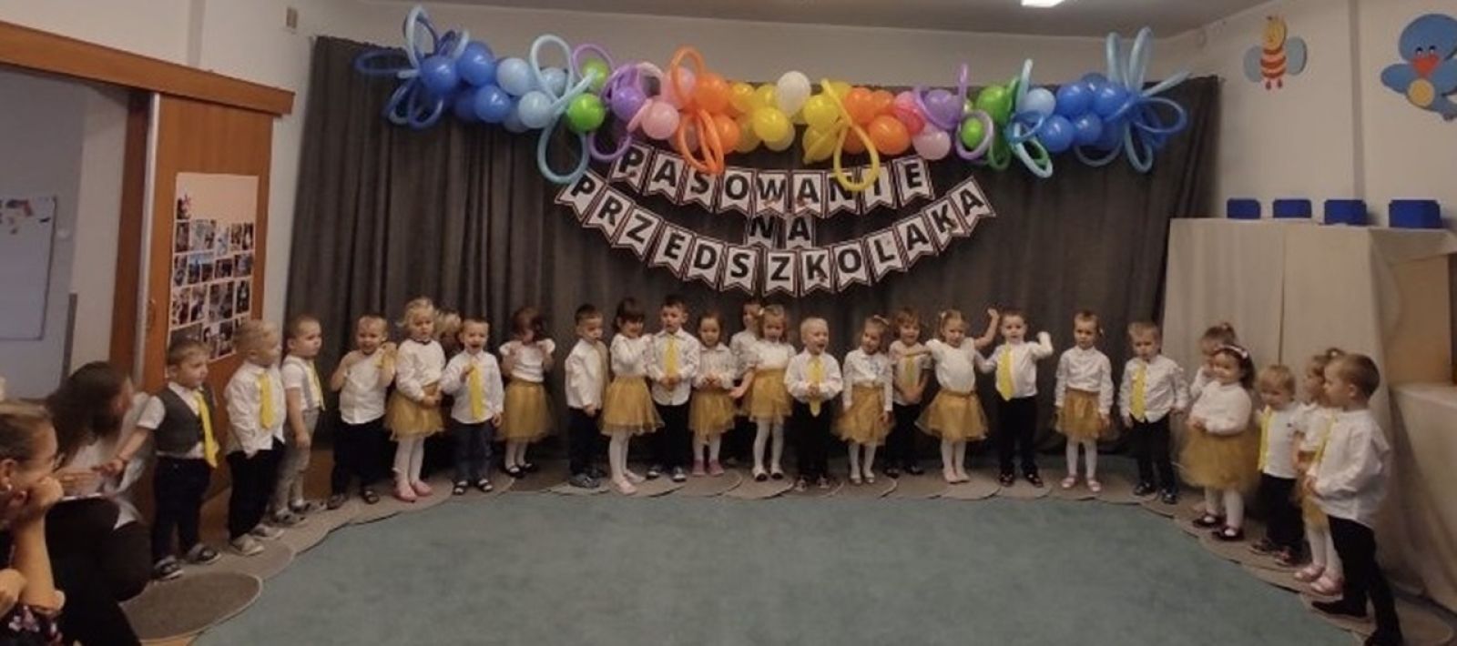 Uroczystość z okazji Pasowania na przedszkolaka to czas pierwszego publicznego występu dzieci w przedszkolu przed rodzicami i opiekunami. W części artystycznej dzieci recytowały wierszyki, śpiewały piosenki i prezentowały układy taneczne, których od września nauczyły się w przedszkolu, aby wykazać się sprawnością i umiejętnościami jak przystało na przedszkolaki wykonywały specjalnie na tę okazję przygotowane zadania. Były też prezenty- gry i zabawki edukacyjne dla grupy oraz symboliczne niespodzianki dla każdego dziecka.
