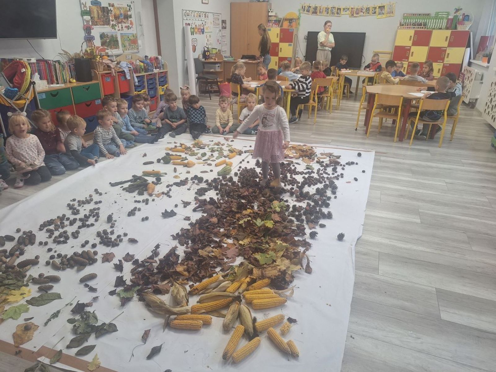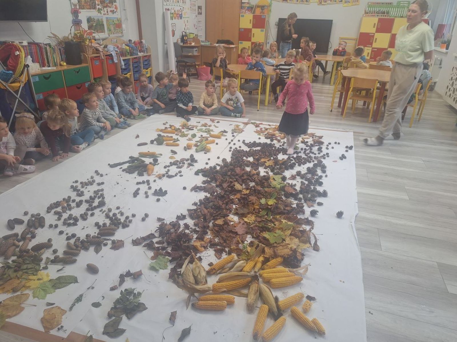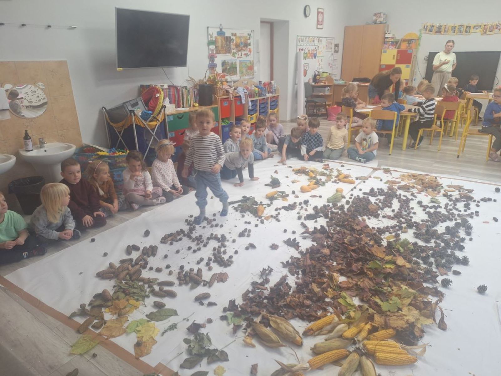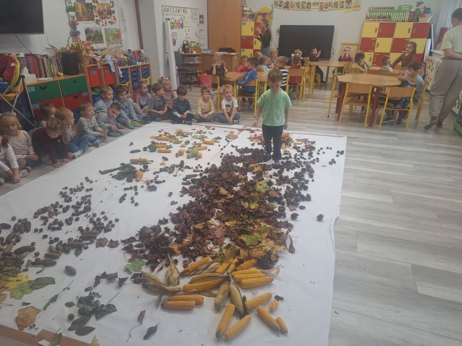• dzieci podczas zajęć sensorycznych, badają dary jesieni