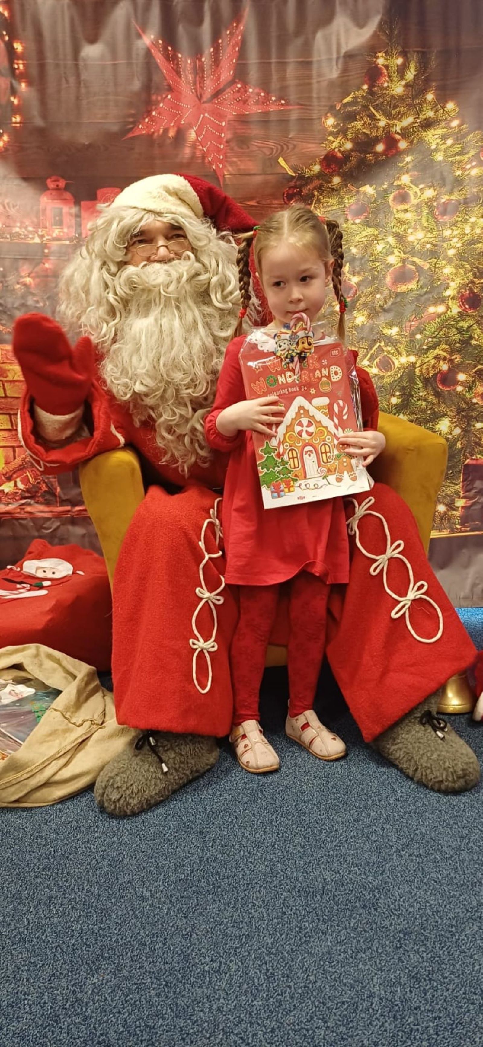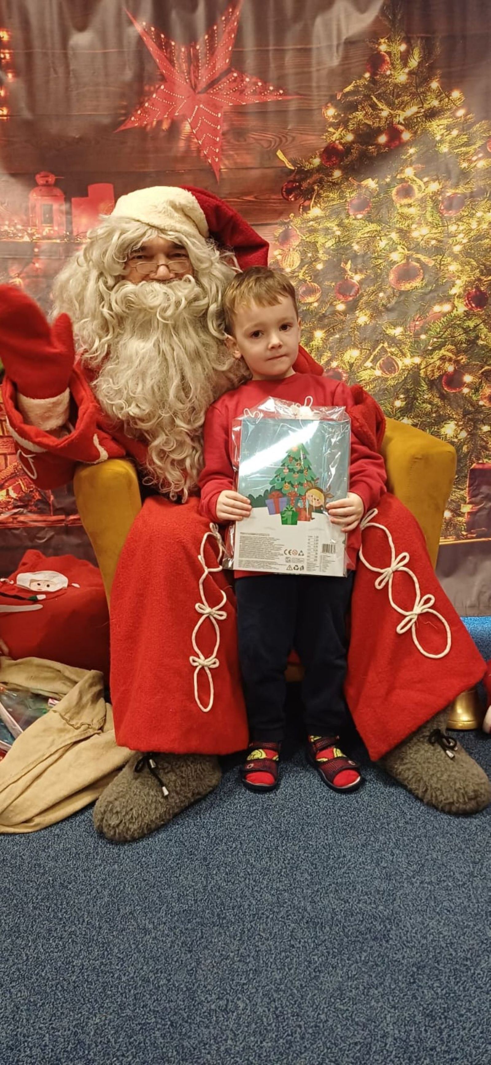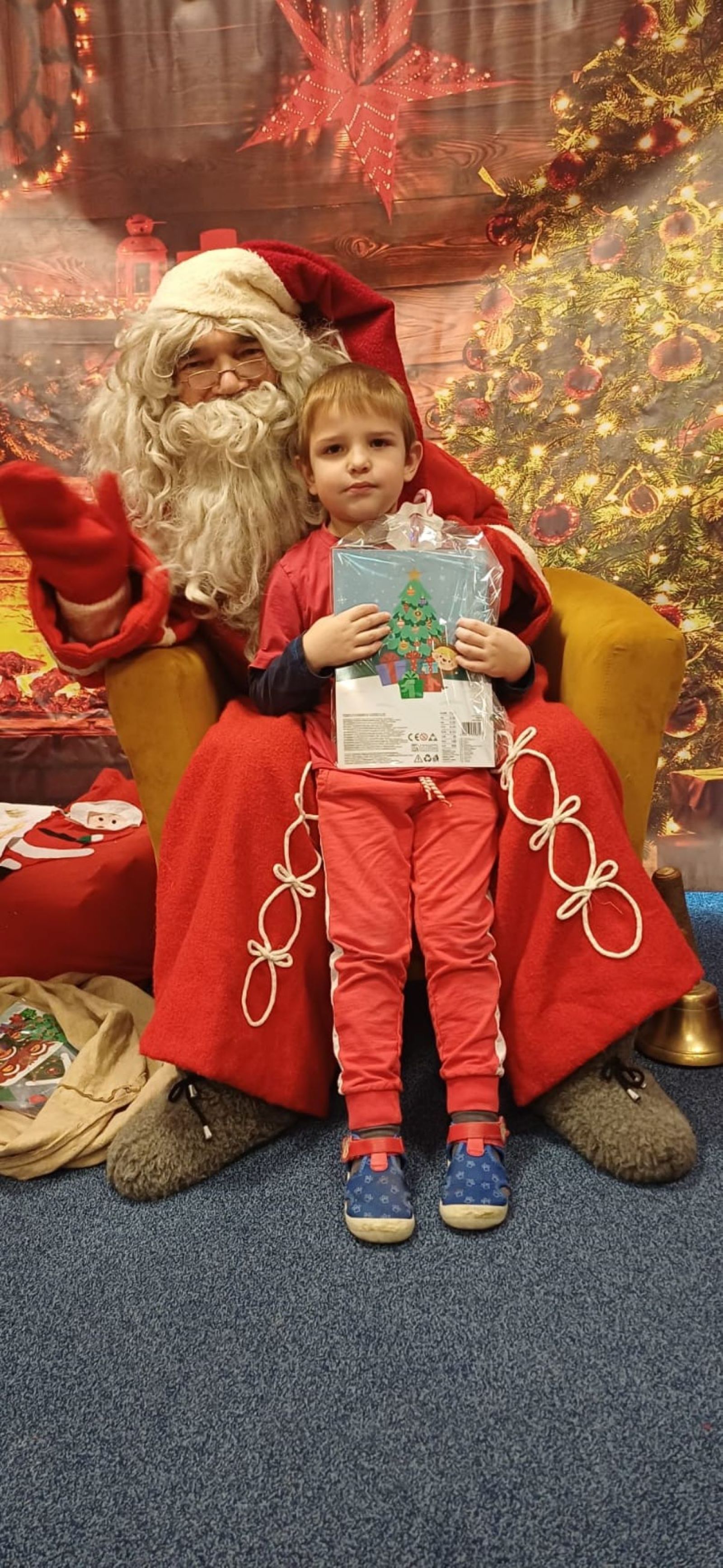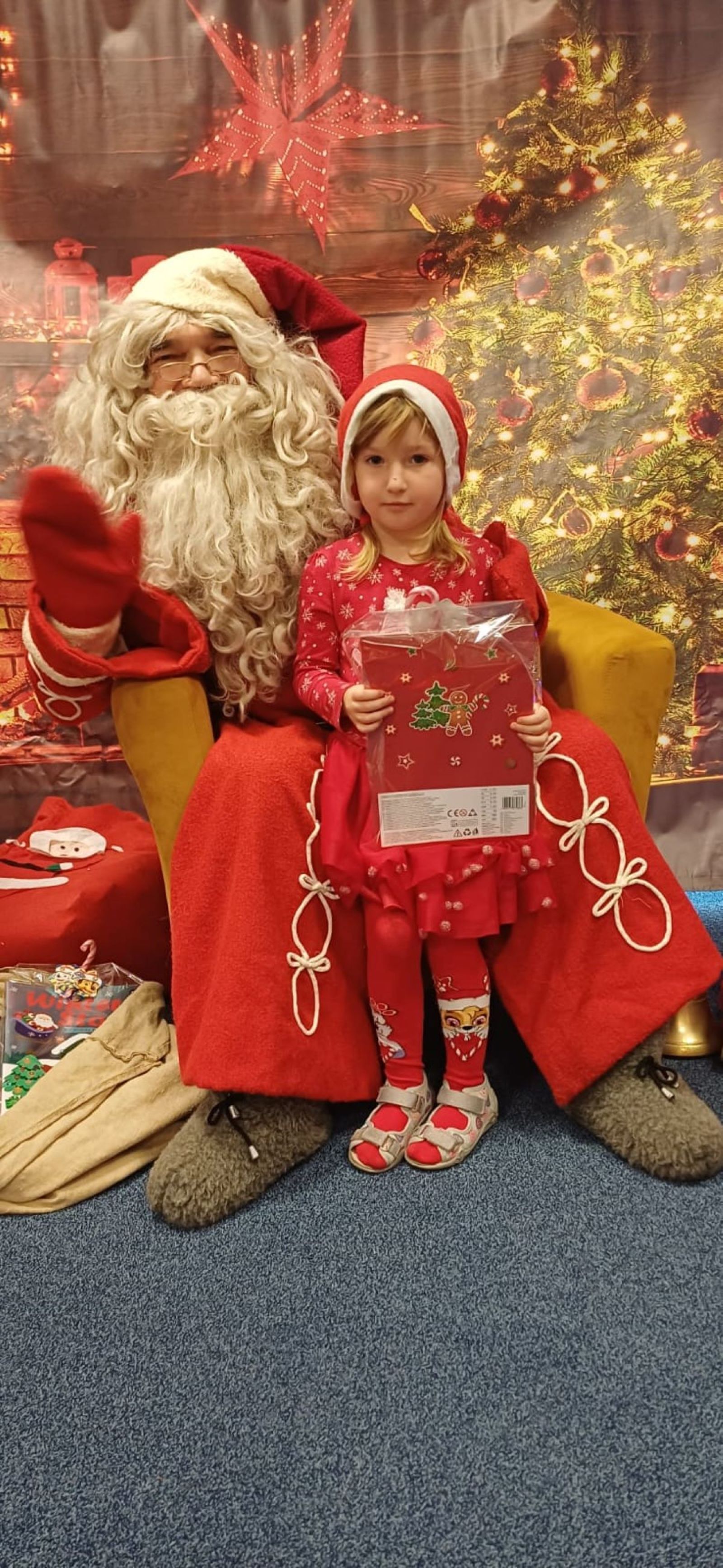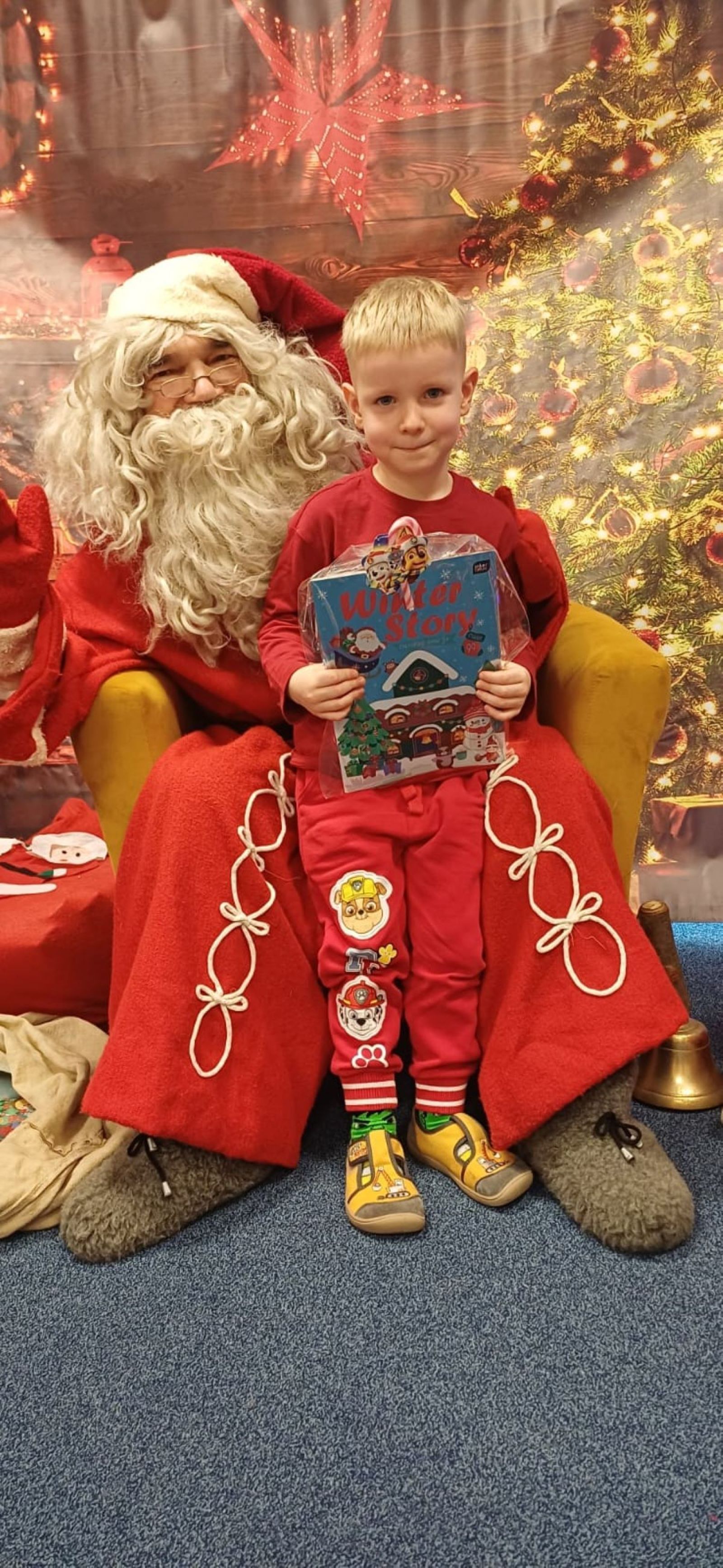 • dzieci podczas spotkania ze Świętym Mikołajem i Panią Mikołajową, otrzymują prezenty i śpiewają piosenki