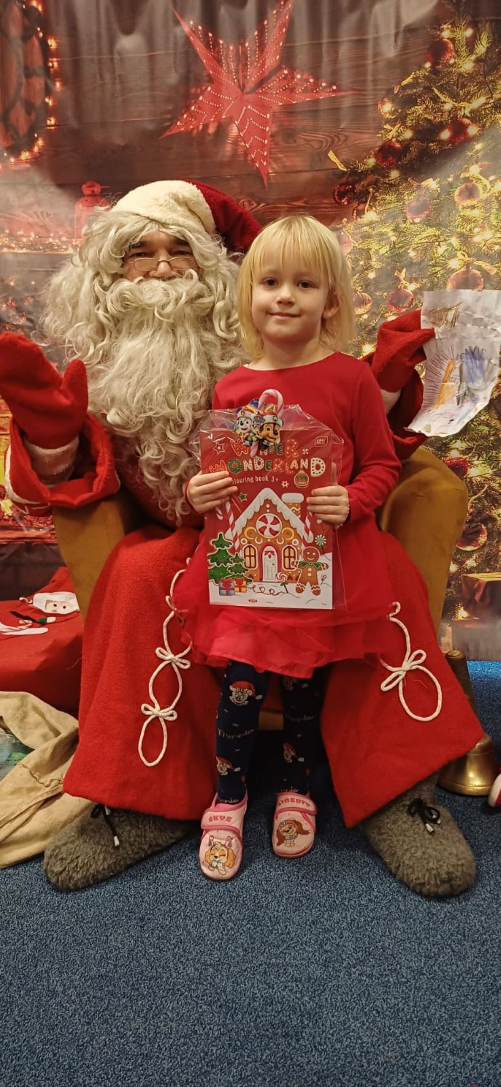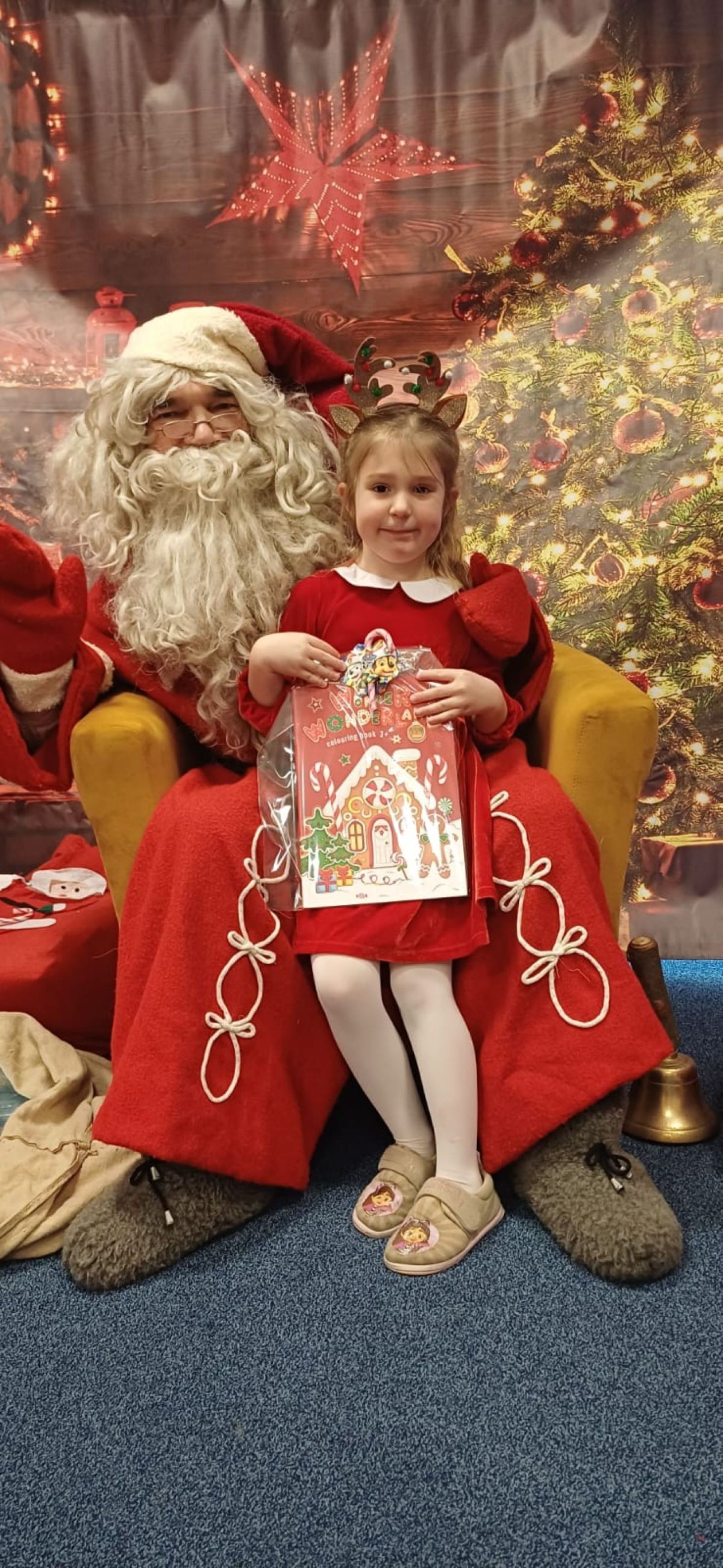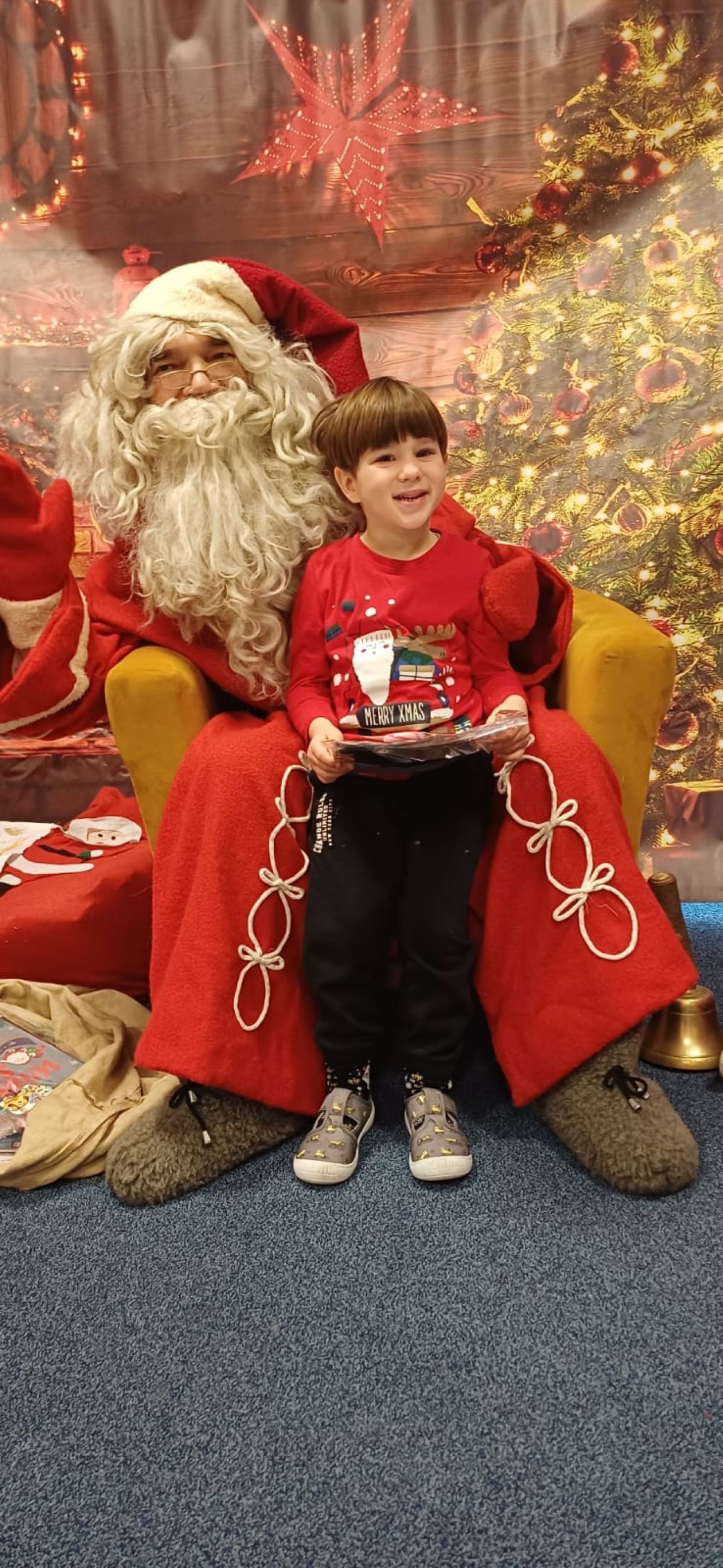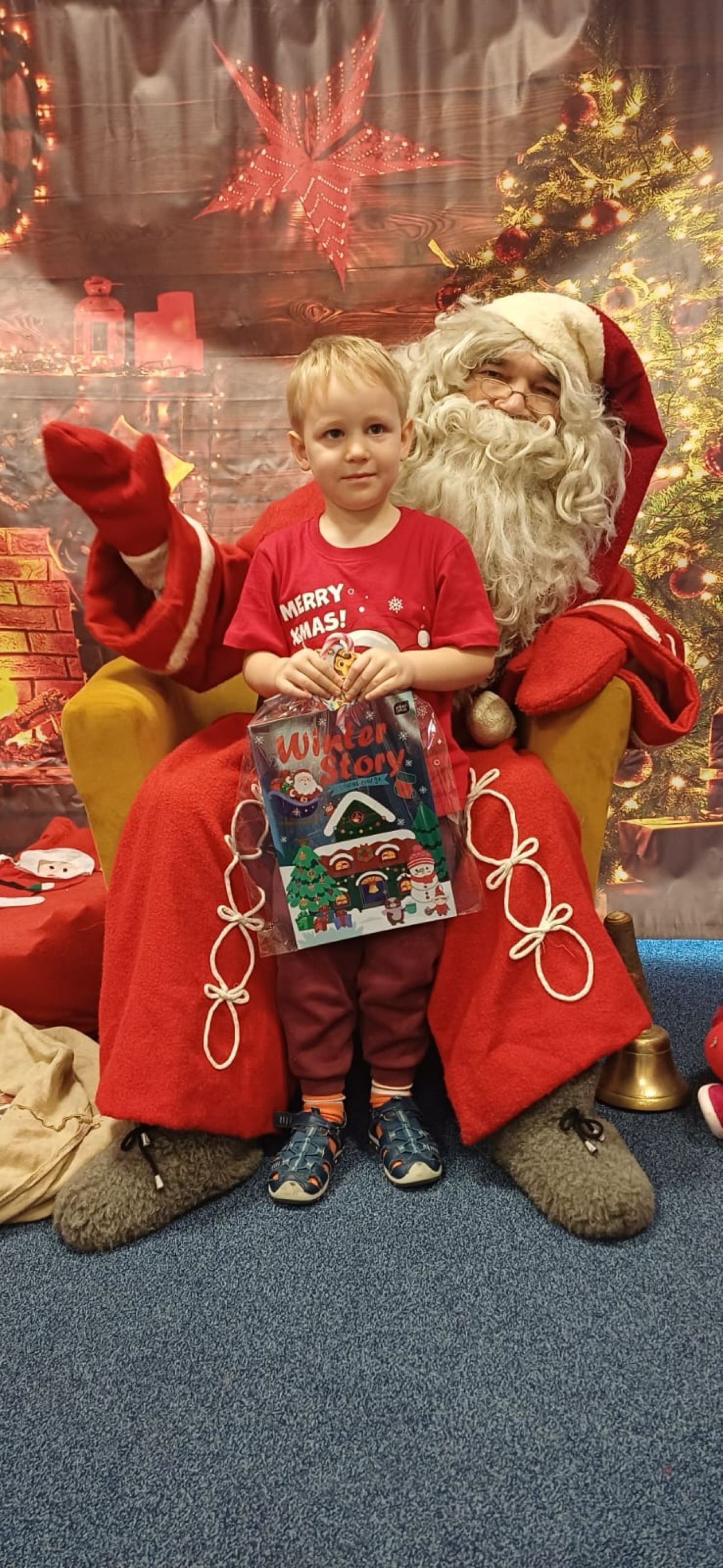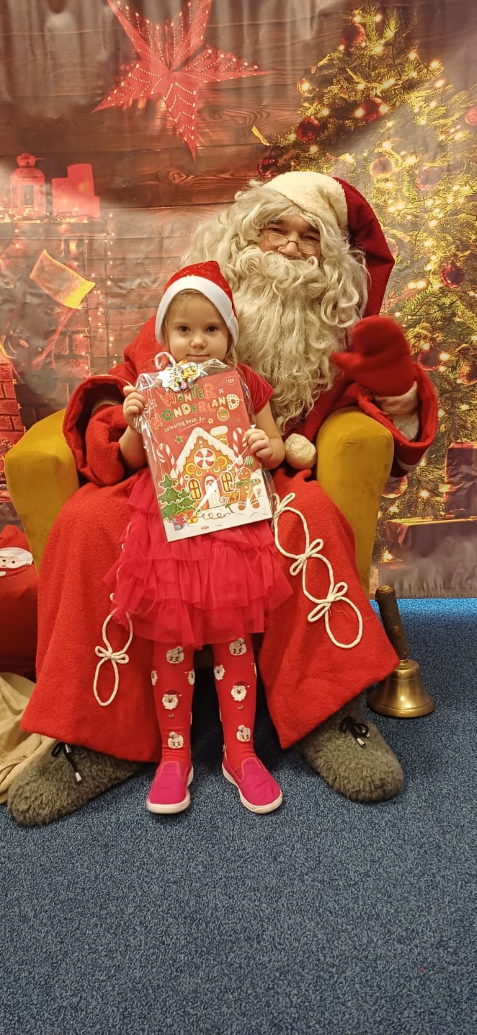 • dzieci podczas spotkania ze Świętym Mikołajem i Panią Mikołajową, otrzymują prezenty i śpiewają piosenki