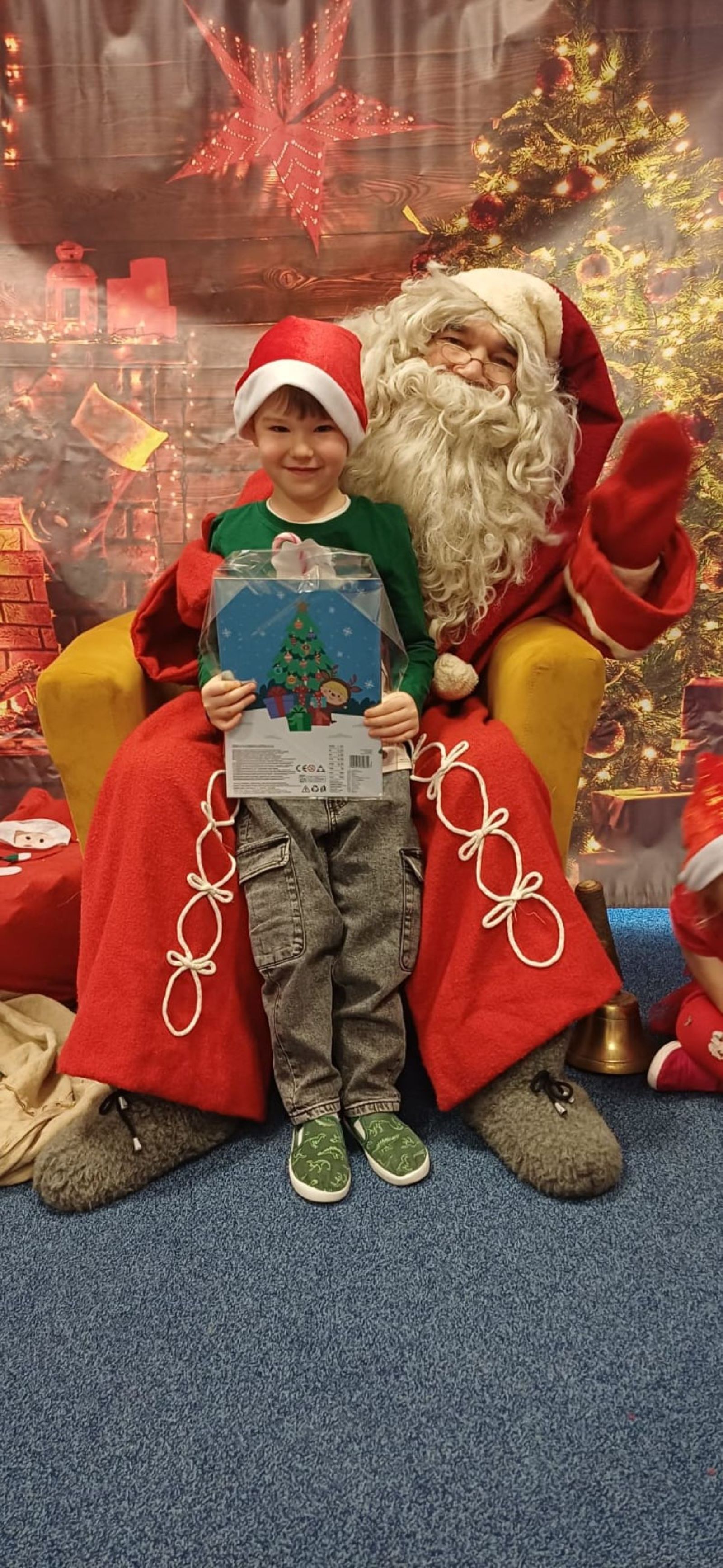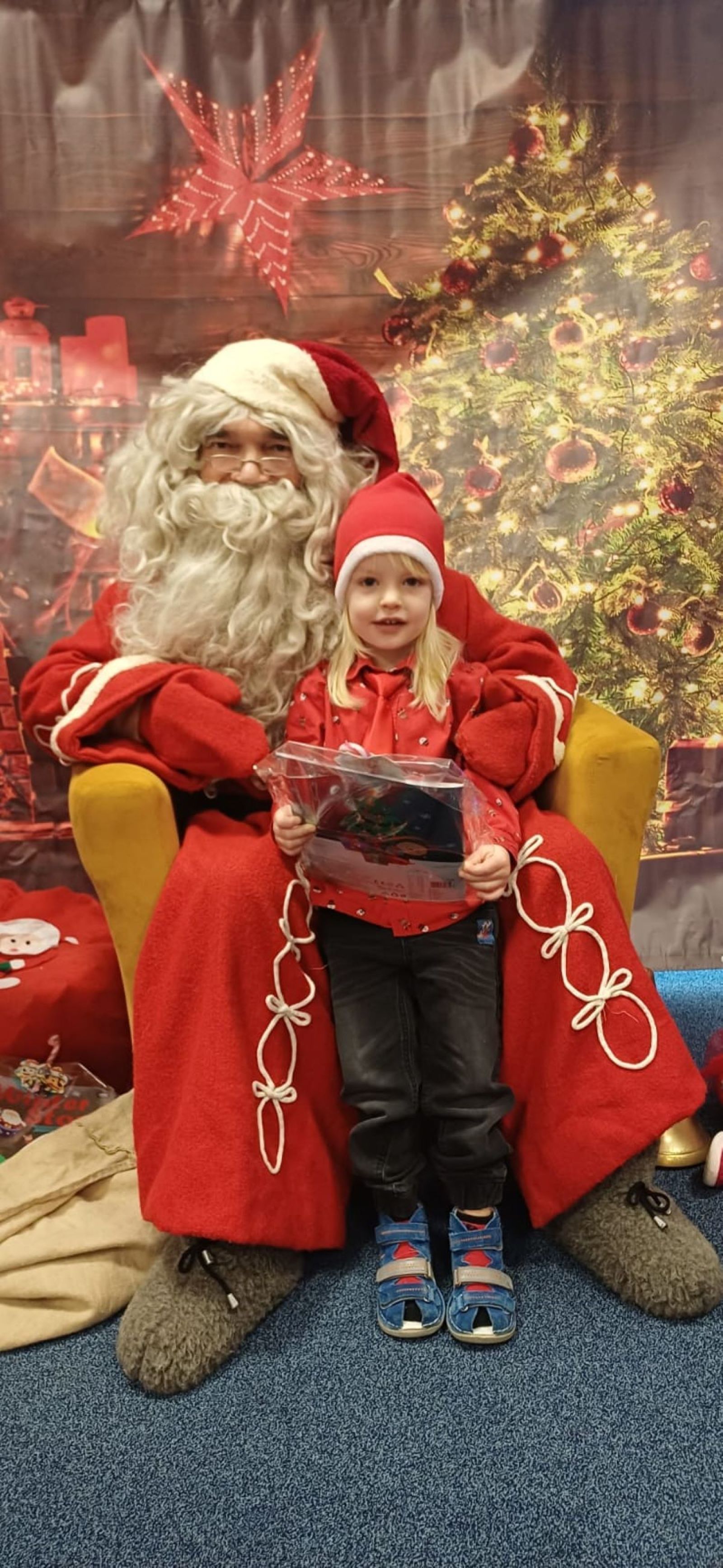 Grupa Żabki obchodziła Mikołajki w wyjątkowo radosnej i magicznej atmosferze. Od samego rana dzieci, ubrane w świąteczne czapeczki i czerwone akcenty, z ciekawością wypatrywały gości z dalekiej Północy. Do przedszkolaków przybył Święty Mikołaj — a wraz z nim Pani Mikołajowa, która pomagała mu w rozdawaniu prezentów i wprowadzaniu świątecznego nastroju. Dzieci przywitały wyjątkowych gości z ogromną radością. Każda Żabka mogła odebrać swój upominek, porozmawiać z Mikołajem i Panią Mikołajową oraz zrobić pamiątkowe zdjęcie. Na twarzach najmłodszych widać było zachwyt, uśmiech i wzruszenie. To był dzień pełen magii, ciepła i świątecznej radości, który na długo pozostanie w pamięci małych Żabek.