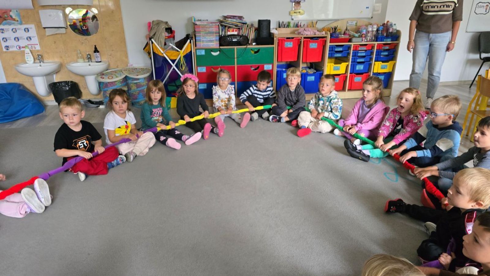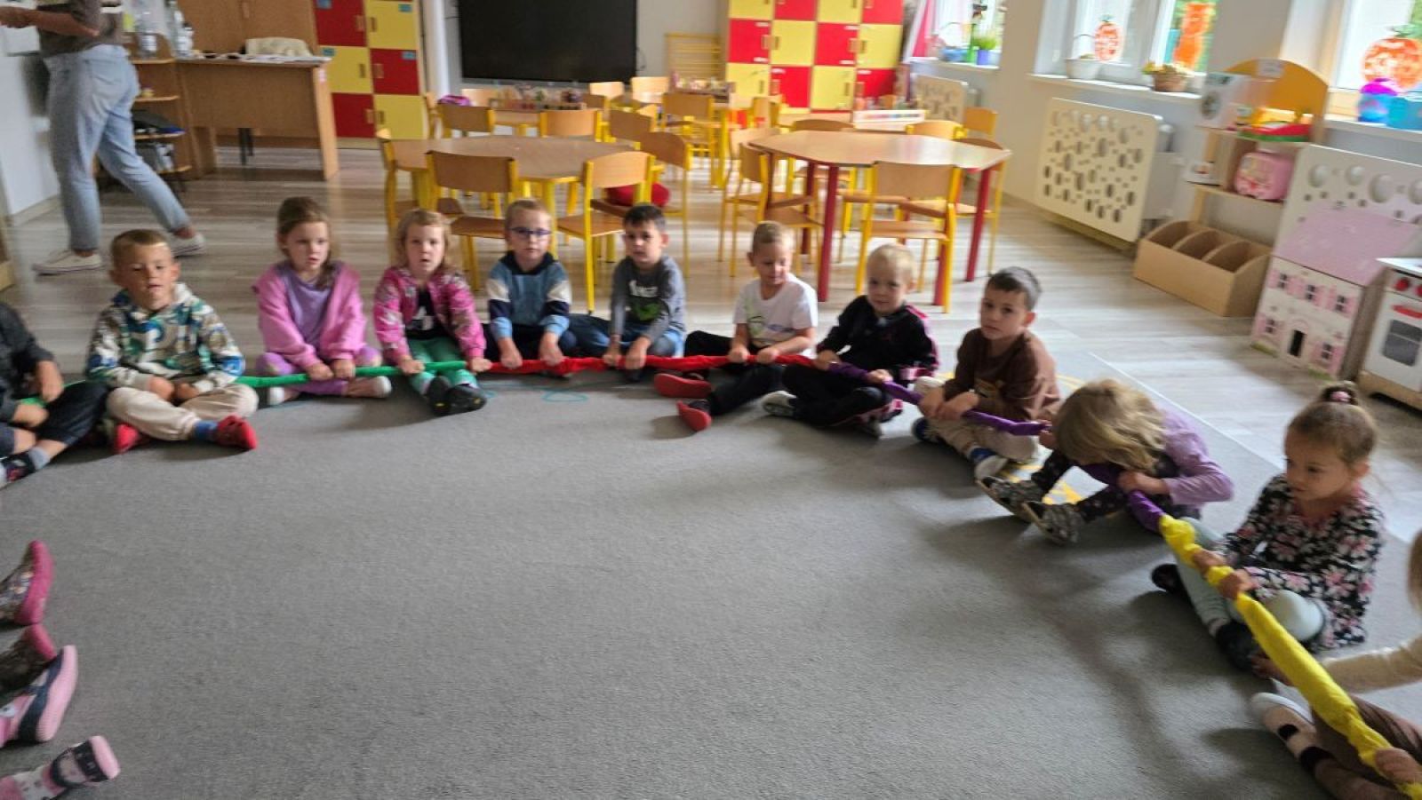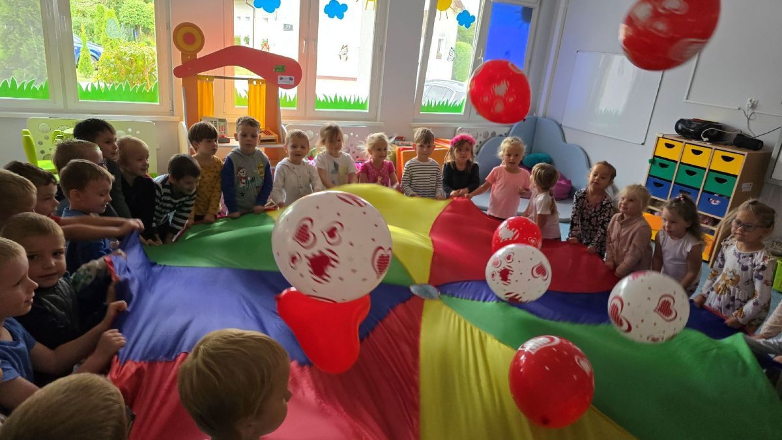 22 września obchodziliśmy w naszej grupie wyjątkowe święto – Dzień Przedszkolaka. To dzień pełen radości, uśmiechu i wspólnej zabawy, podczas którego każde dziecko czuje się szczególnie ważne. W naszej grupie od samego rana panowała niezwykła atmosfera. Dzieci powitały dzień wesołymi tańcami i piosenkami, a na Sali rozbrzmiewał śmiech i muzyka. Następnie czekały na nas różnorodne zabawy ruchowe i integracyjne – konkurencje sportowe, zadania zespołowe i quizy, w których dzieci mogły wykazać się sprytem oraz pomysłowością.