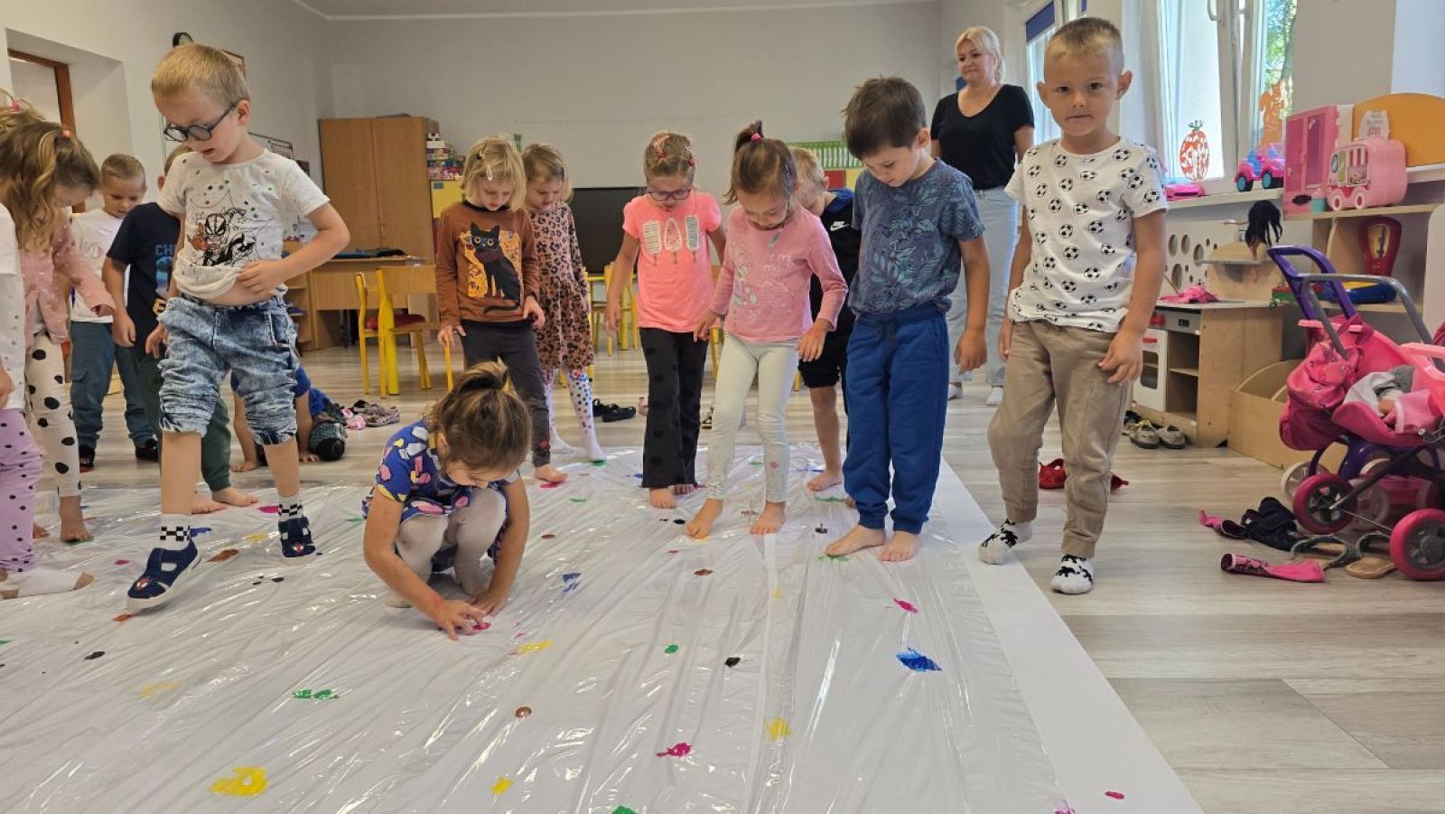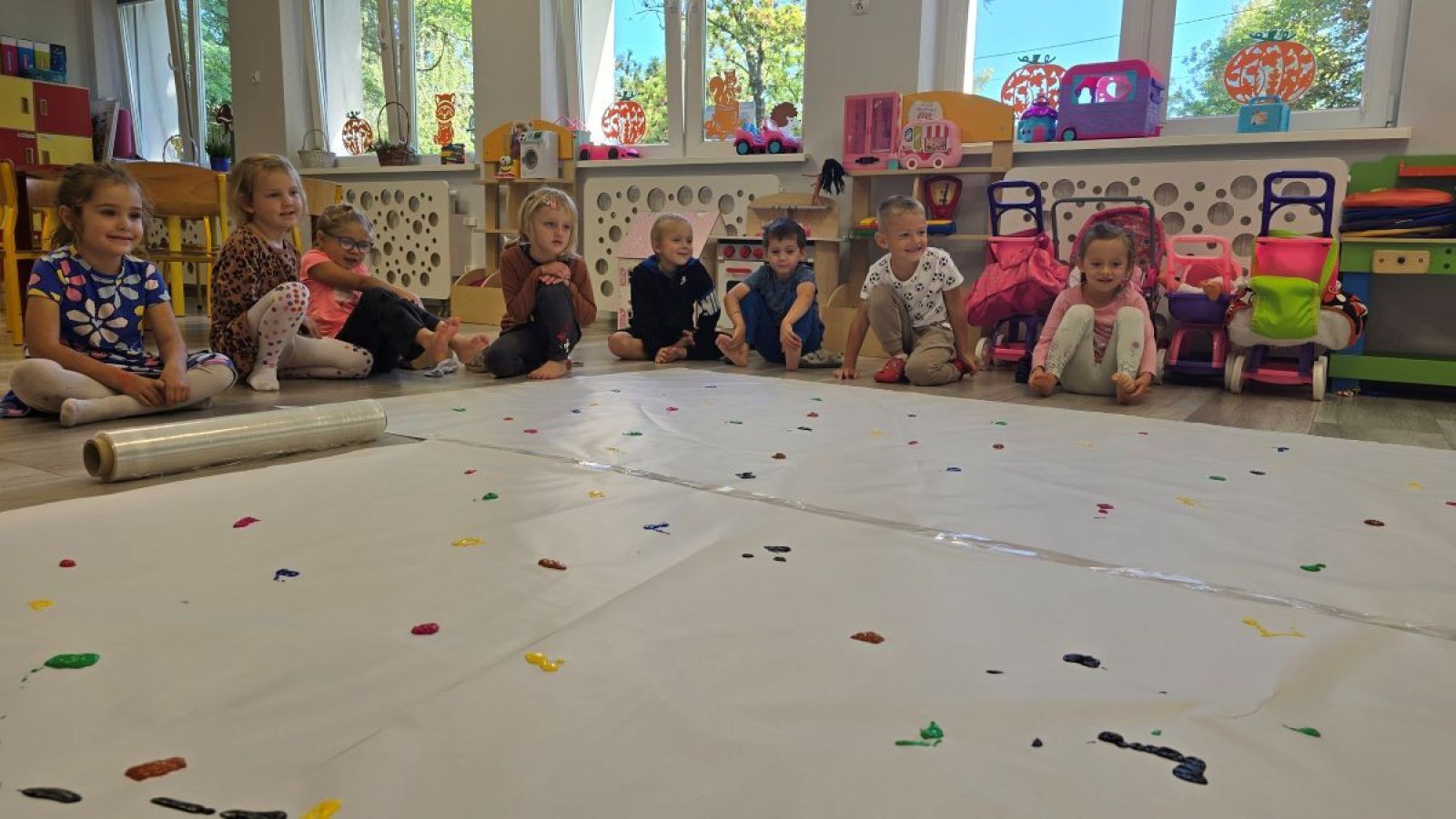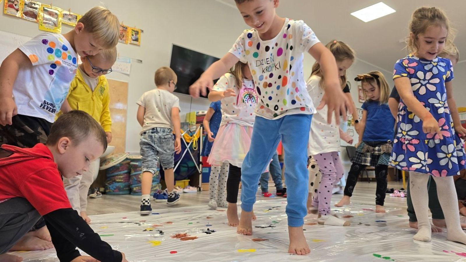 Każde dziecko jest wyjątkowe, a jego pomysły i zdolności zasługują na odkrycie. W przedszkolu świętujemy to podczas Dnia Kropki – międzynarodowego wydarzenia, które inspiruje dzieci do odkrywania swoich talentów, kreatywności i wiary w siebie. Ten dzień w naszym przedszkolu był pełen kolorów,zabawy i twórczych wyzwań. Dzieci malowały własne kropki w różnych kolorach i kształtach, tworzyły prace plastyczne inspirowane motywem kropki, uczestniczyływ zabawach ruchowych z użyciem kropek na podłodze. Była to super zabawa:)