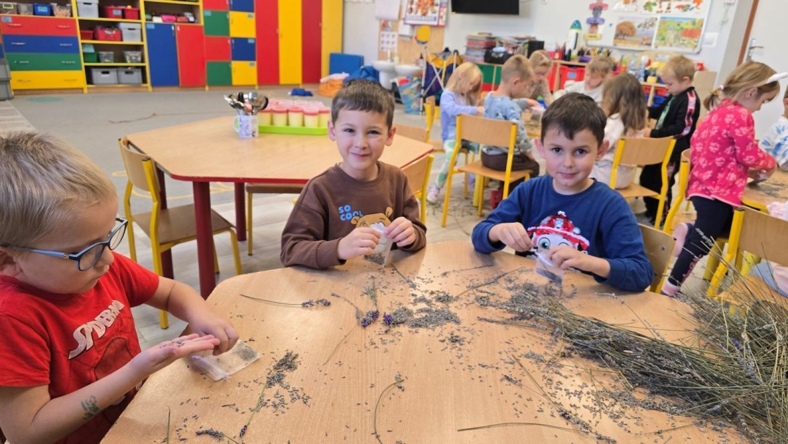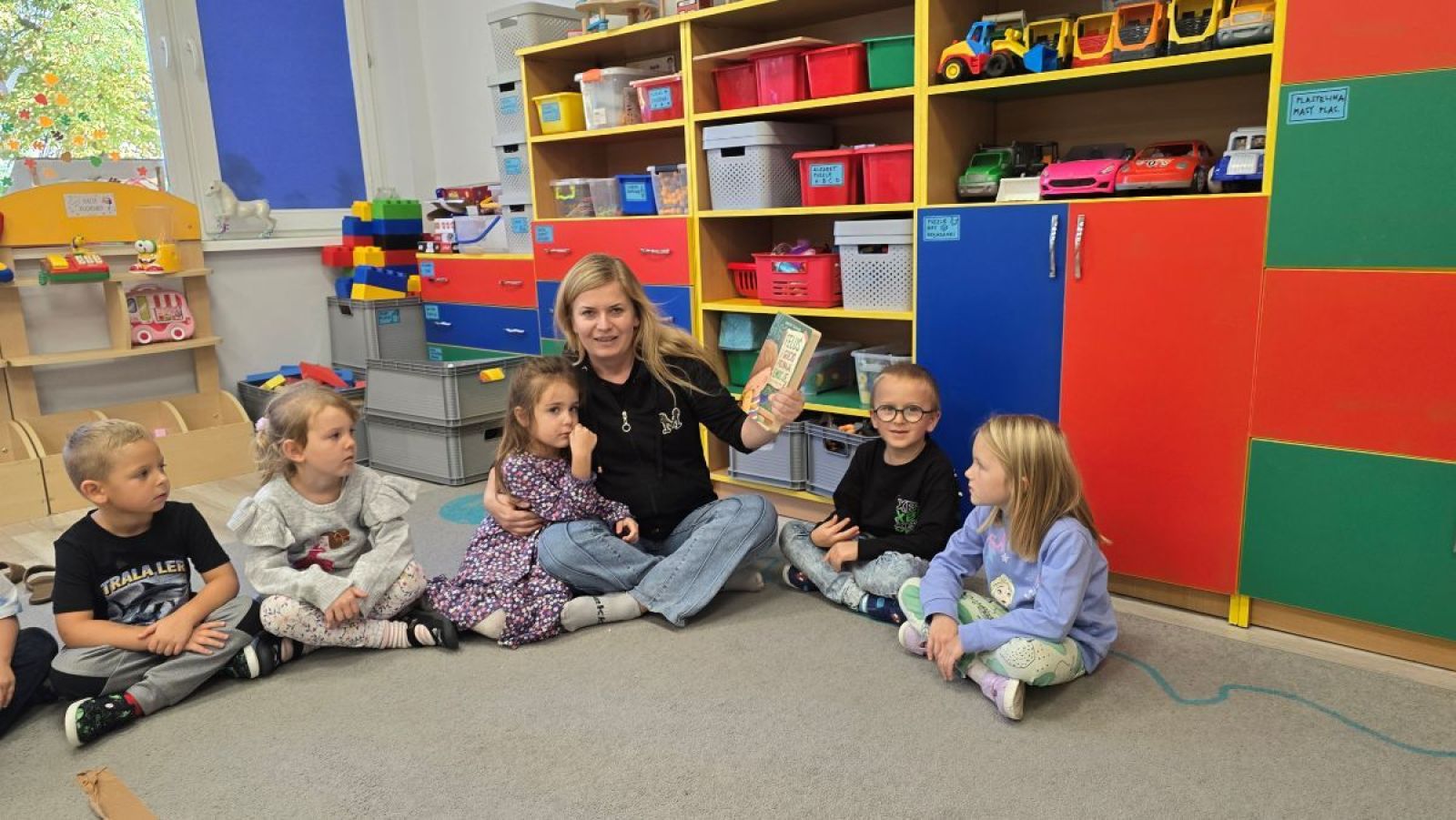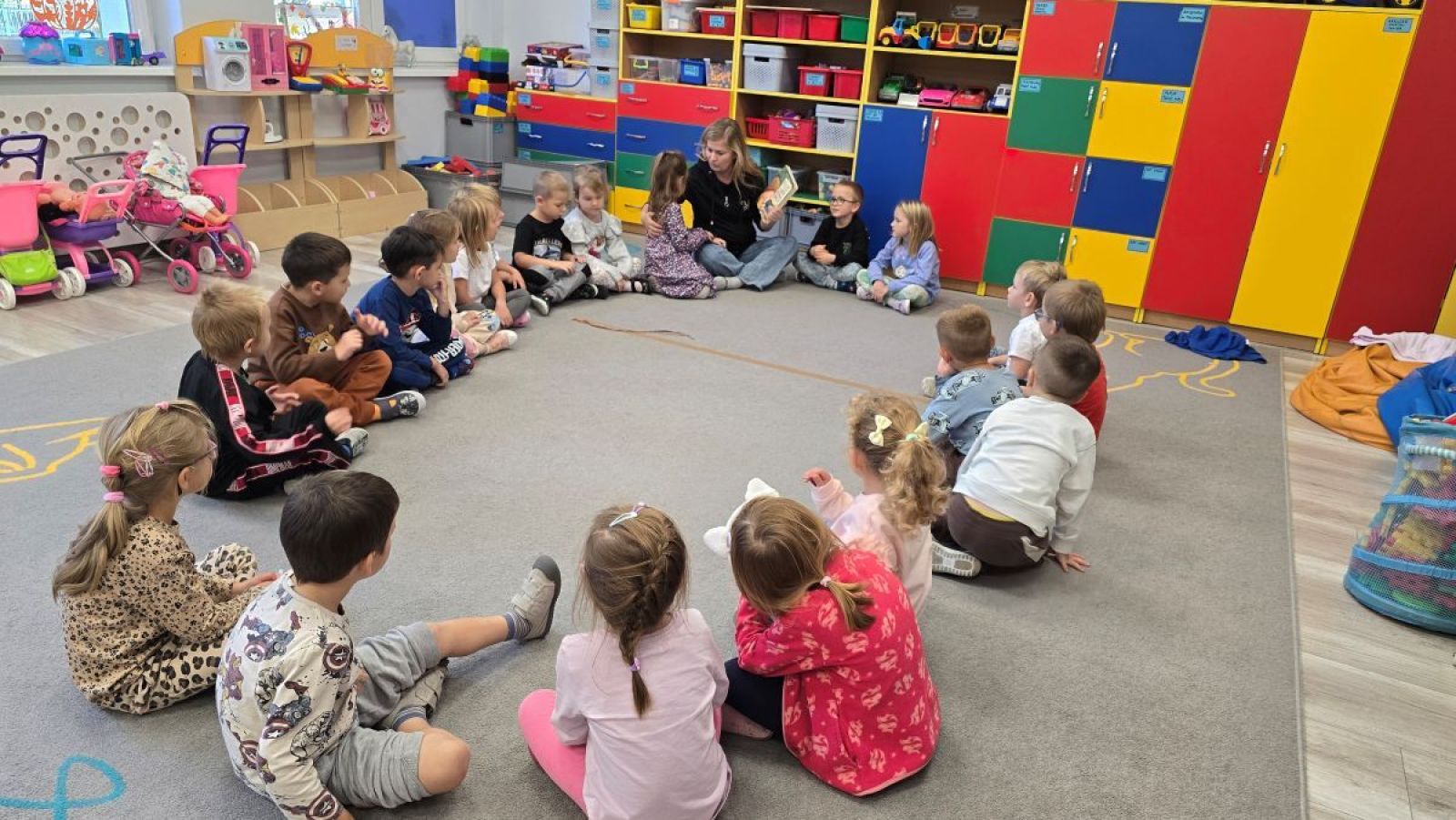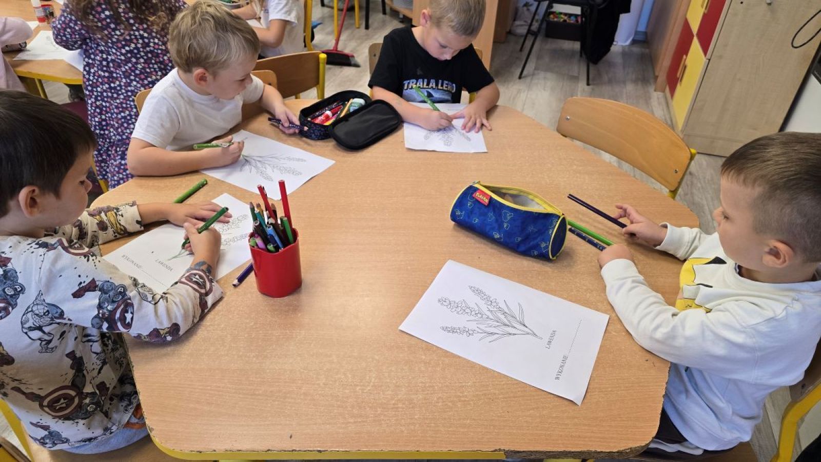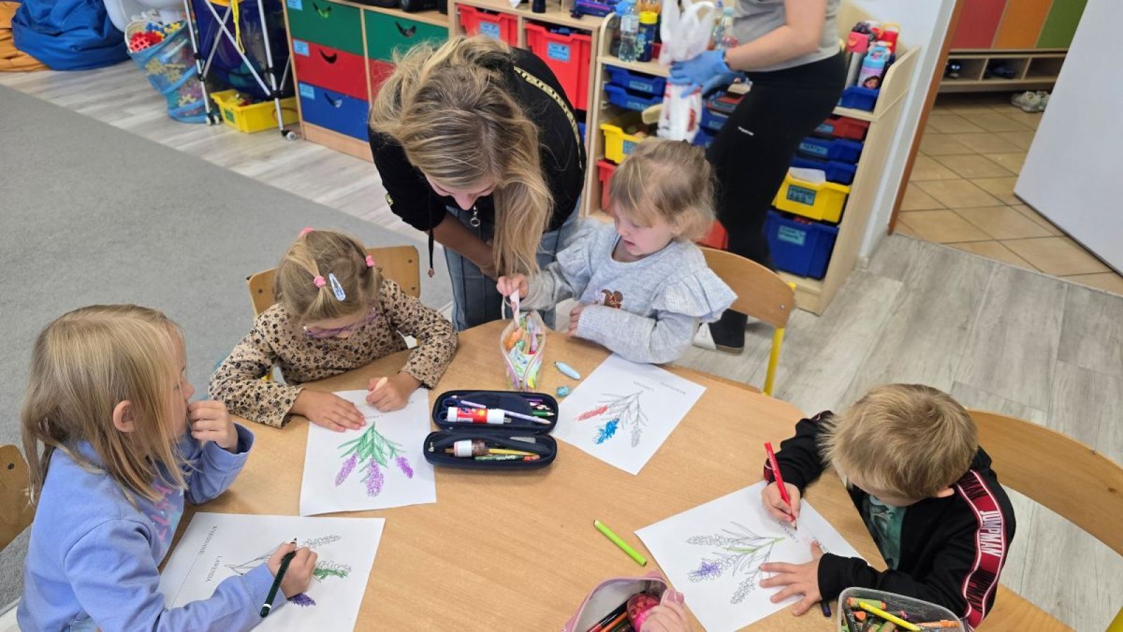 W ramach ogólnopolskiej akcji „Cała Polska czyta dzieciom” naszą grupę ponownie odwiedził wyjątkowy gość – mama jednego z przedszkolaków, która przeczytała dzieciom książkę „Feluś poznaje emocje”. Opowieść o małym Felusiu stała się wspaniałym pretekstem do rozmów o tym, co czujemy w różnych sytuacjach. Dzieci rozpoznawały radość, złość, smutek i zdziwienie. Po części czytelniczej mama przygotowała dla dzieci wyjątkowe zajęcia praktyczne. Każdy mógł własnoręcznie: pokruszyć w dłoniach gałązkę lawendy, by uwolnić jej aromat, a następnie wsypać pachnące kwiatki do materiałowego woreczka. Powstały piękne lawendowe saszetki, które dzieci zabrały do domu – idealne do szuflady, pod poduszkę albo prezent dla bliskiej osoby. To było pełne emocji spotkanie, które pokazało, że czytanie może łączyć się z doświadczeniem świta wszystkimi zmysłami.