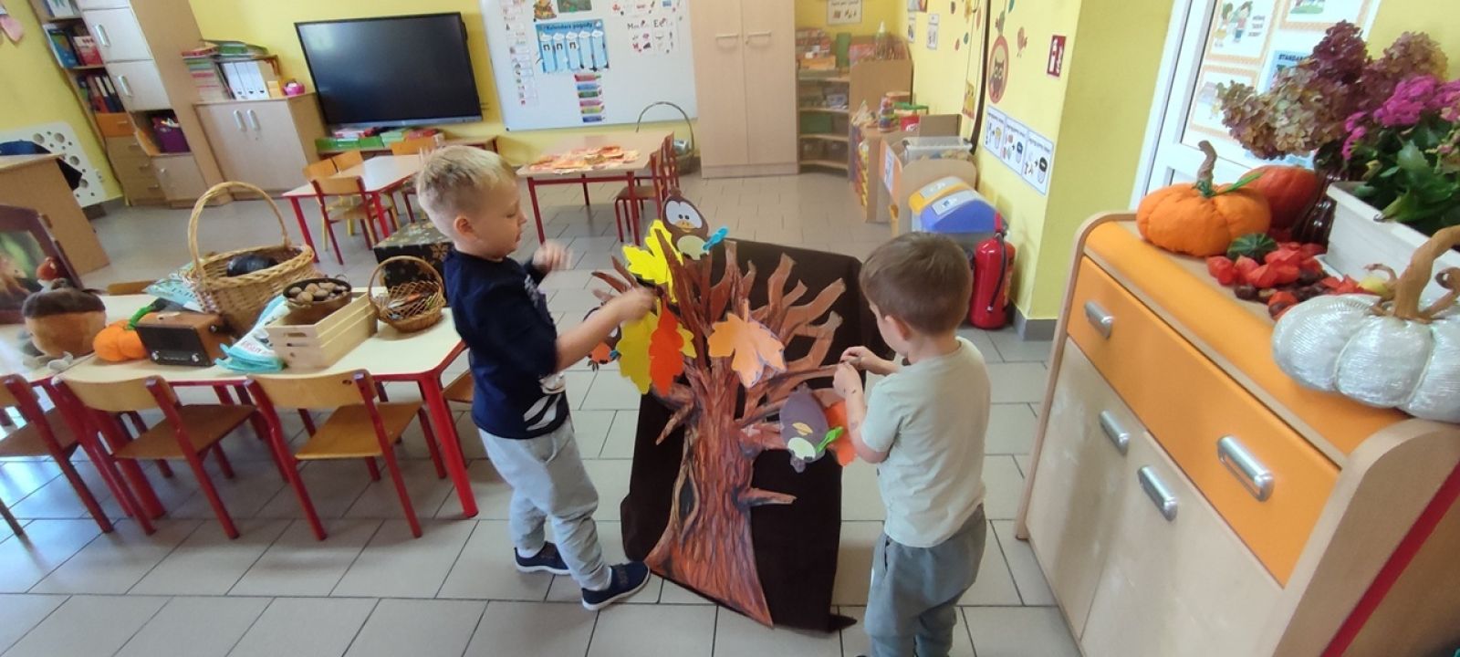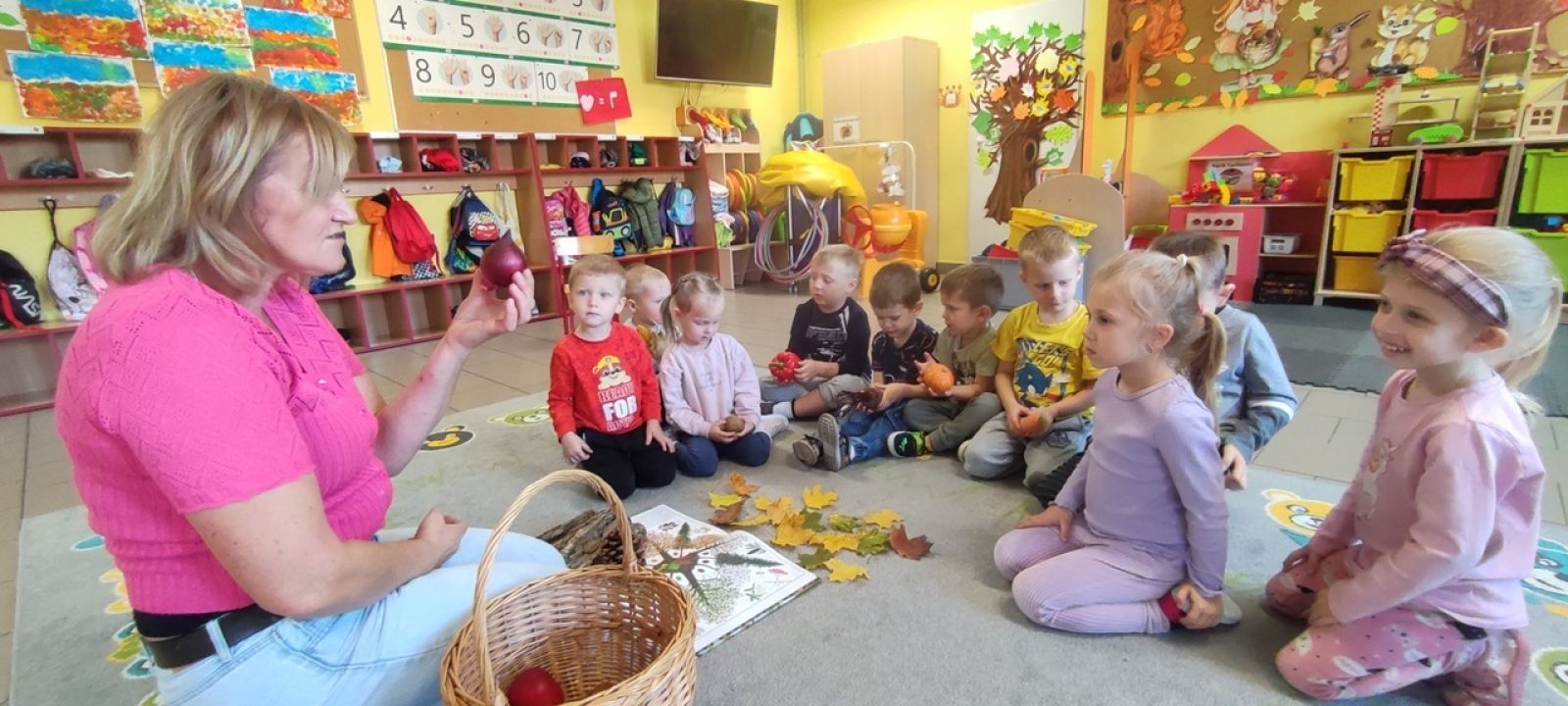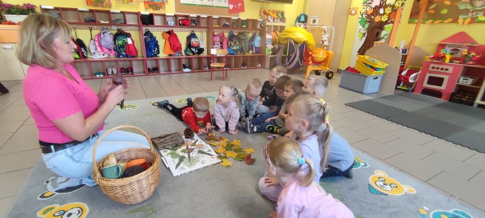 Gdy za oknem zaczynają wirować kolorowe liście, a poranki stają się chłodniejsze, to znak, że nadeszła jesień! W naszym przedszkolu to czas na rozmowy o zmianach w przyrodzie, darach jesiennych i przygotowaniach zwierząt do zimy. Ostatnio przedszkolaki z grupy „Jagódki” odwiedziła bibliotekarka Pani Beata Fic i zaprosiła dzieci do udziału w specjalnych zajęciach na temat jesiennych zwyczajów. Spotkanie było pełne wrażeń, kreatywnej zabawy i radosnej nauki. Czekamy na kolejne inspirujące odwiedziny