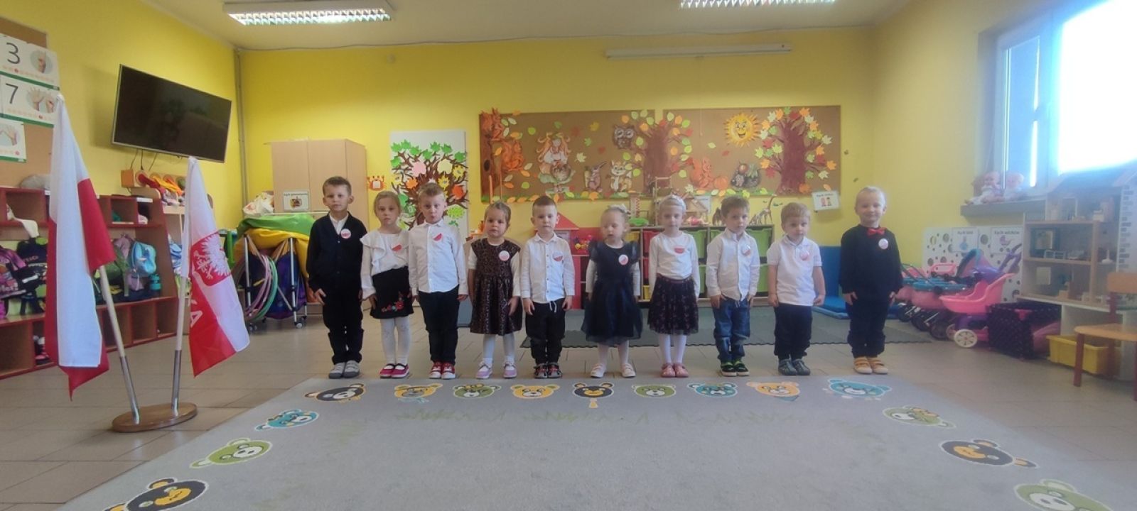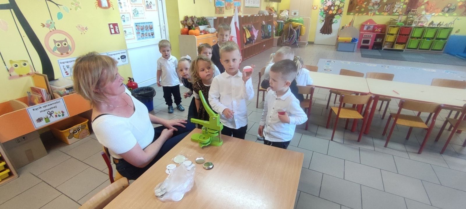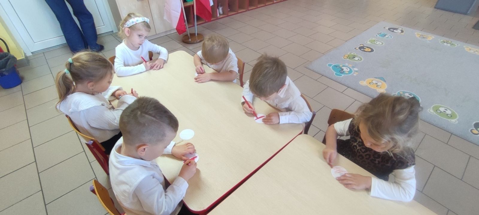 Na zakończenie zajęć dzieci wykonały pamiątkowe przypinki z flagą Polski oraz odśpiewały dumnie hymn państwowy.