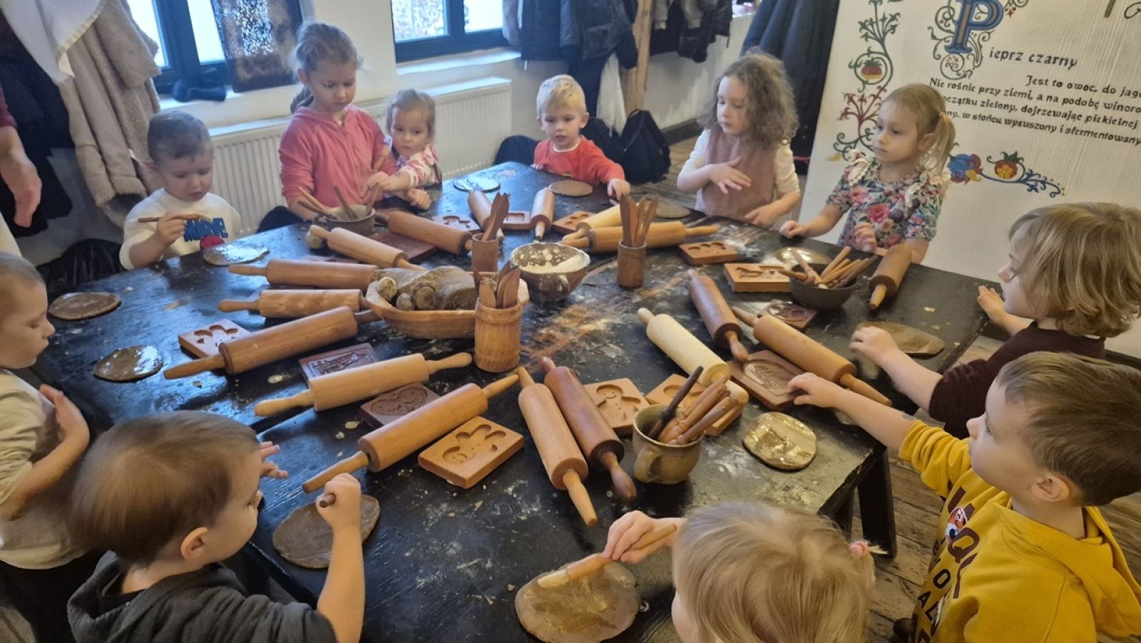 Dzieci z grupy Jagódki, Pszczółki i Motylki wybrały się na pierwszą w tym roku wycieczkę. Odwiedziliśmy Żywe Muzeum Piernika gdzie, od progu witał nas mistrz piernikarski. Zdradził nam on wszystkie tajne składniki piernikowego ciasta a potem „zagnał do roboty”. Ugniataliśmy, wałkowaliśmy i wykrawaliśmy w pocie czoła. Mieliśmy także okazję obejrzeć maszyny rzemieślnicze i pracę zdobniczą pierników. Poczuliśmy magię świąt.