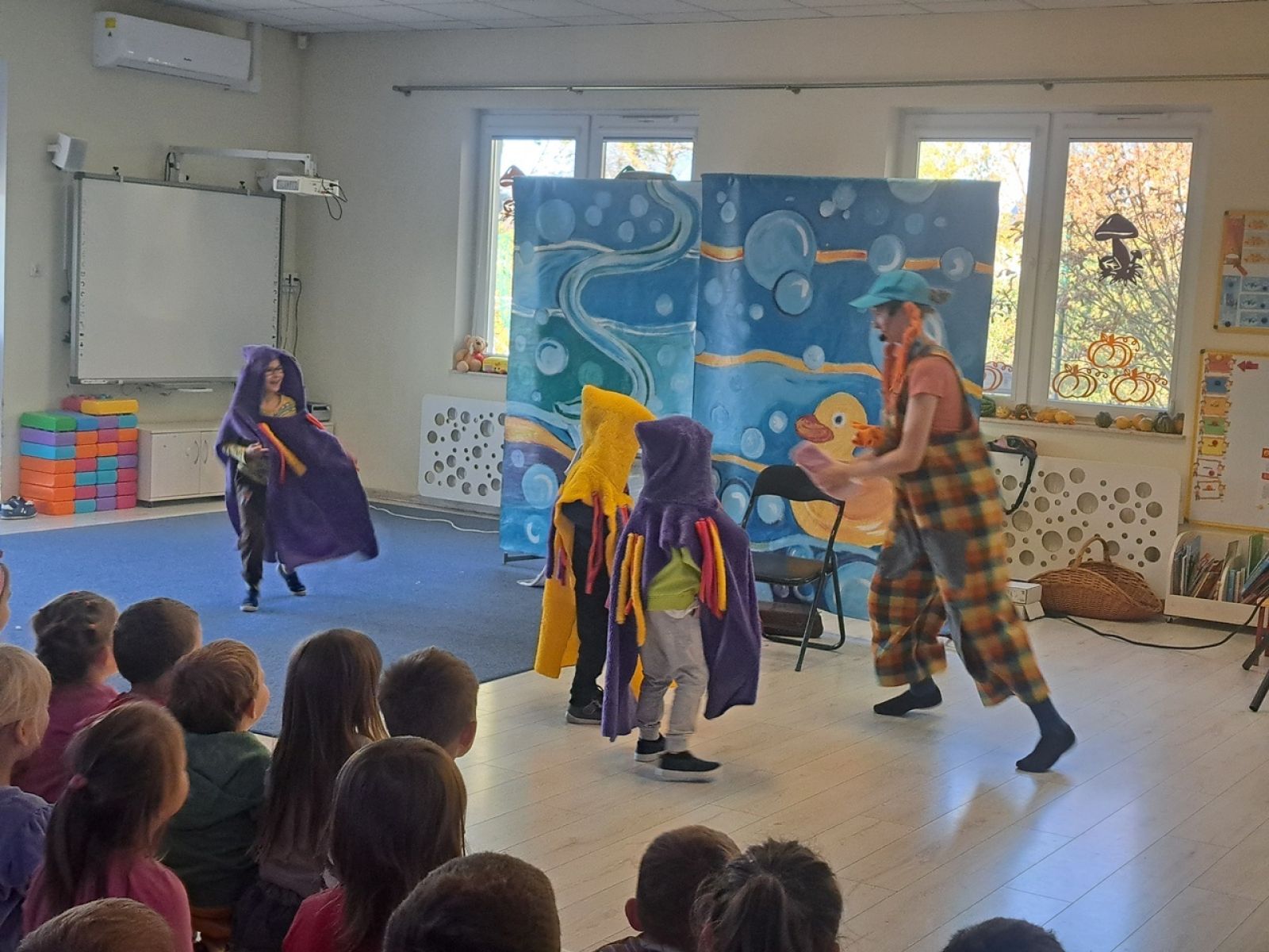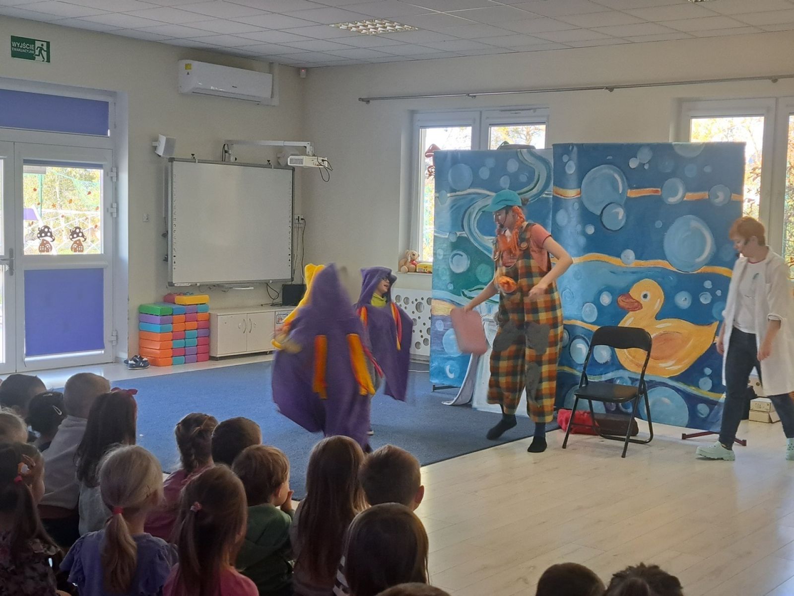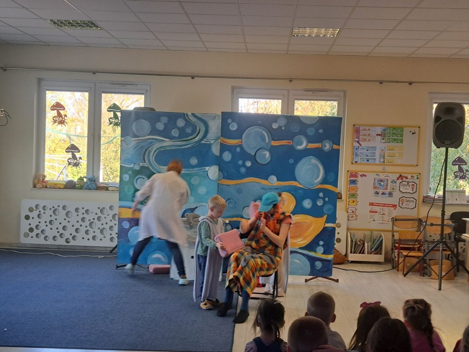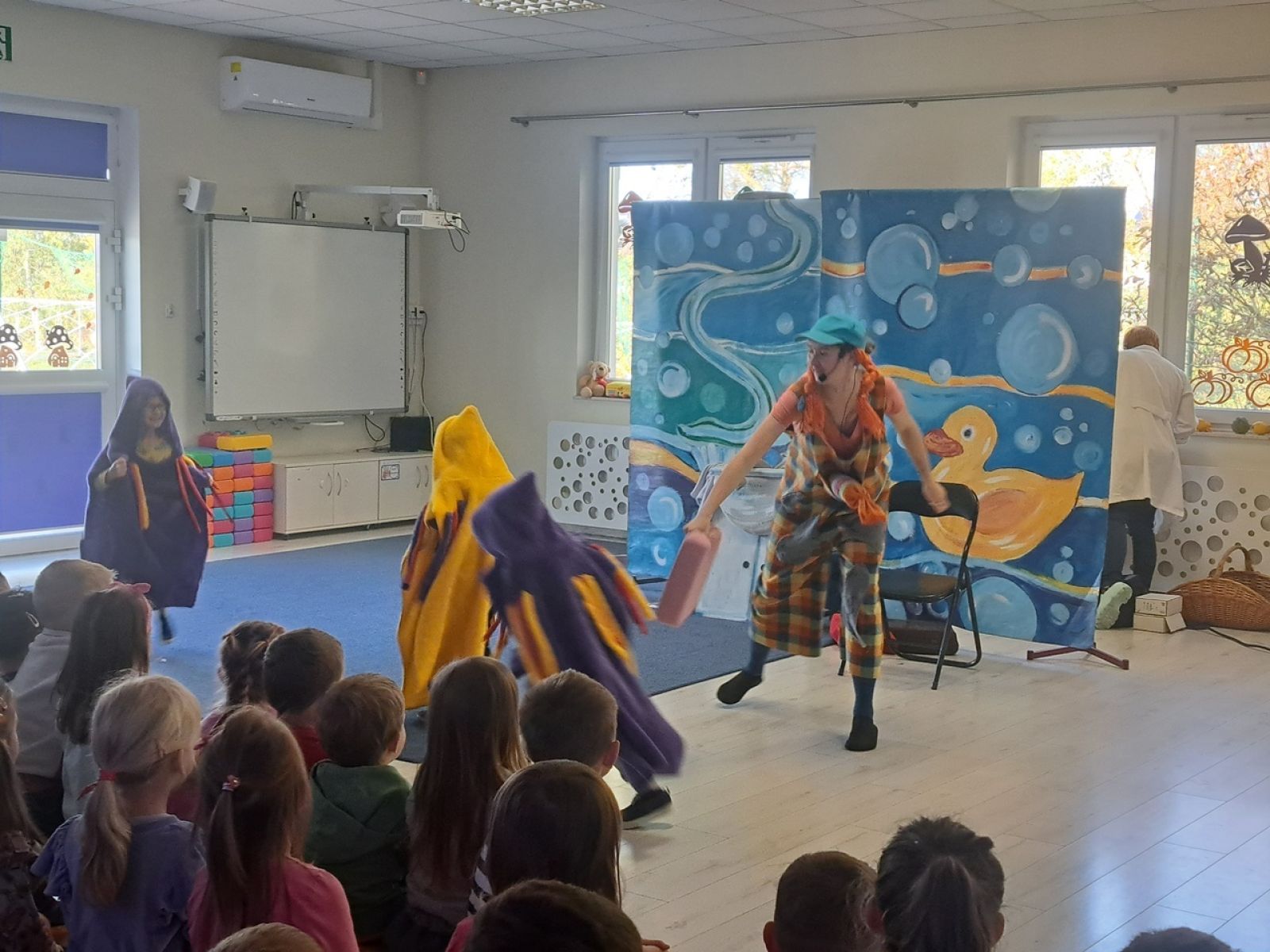 21 października do naszego przedszkola zawitał toruński Teatr Magmowcy ze spektaklem: „W zdrowym ciele zdrowy duch”. Aktorzy zaprezentowali sztukę, która łączy dobrą zabawę z ważnym przekazem edukacyjnym. Przedstawienie, skierowane do dzieci w wieku przedszkolnym i wczesnoszkolnym, w lekki i przystępny sposób uczy najmłodszych zasad higieny i zdrowego stylu życia.