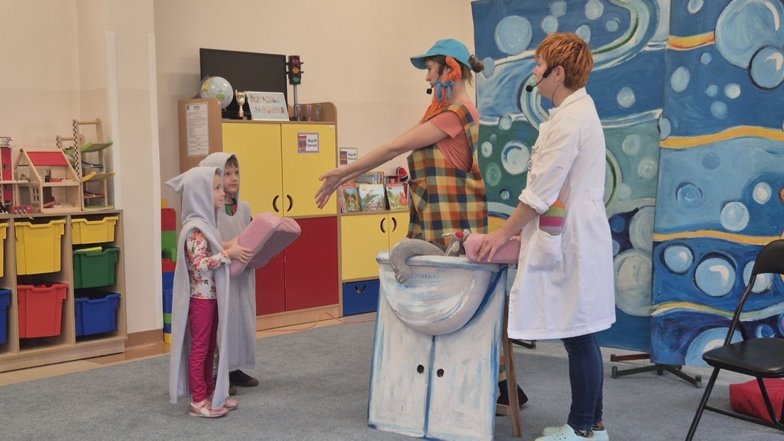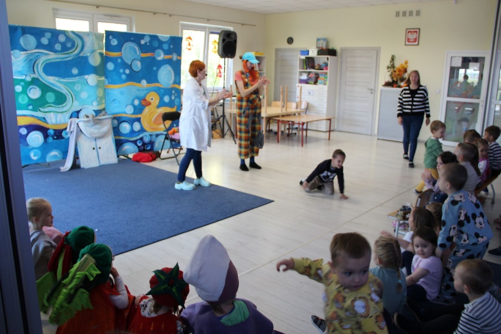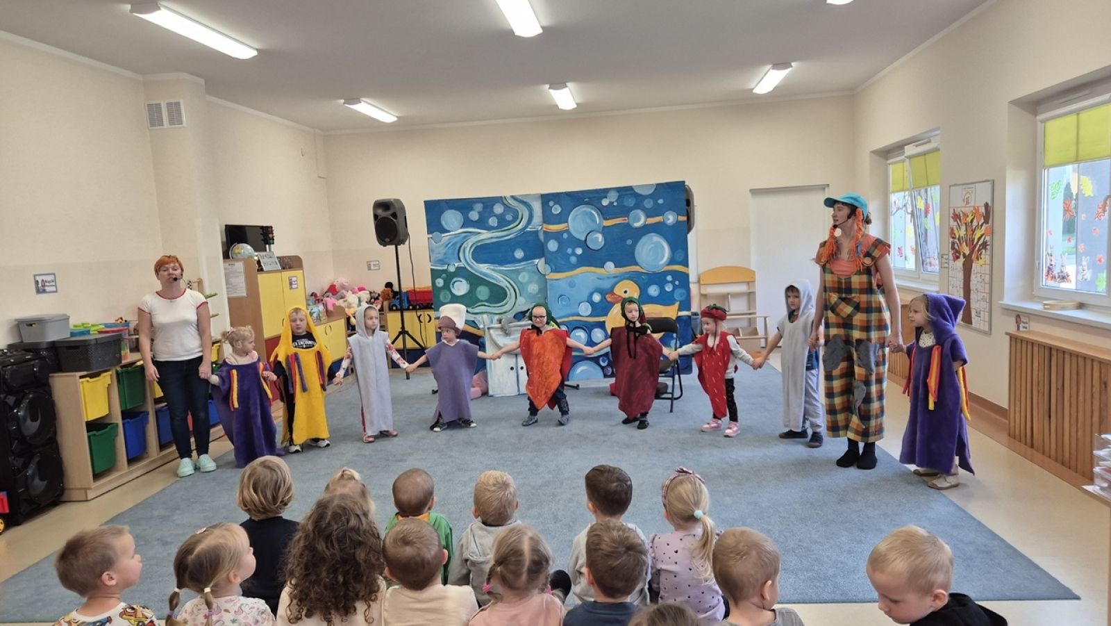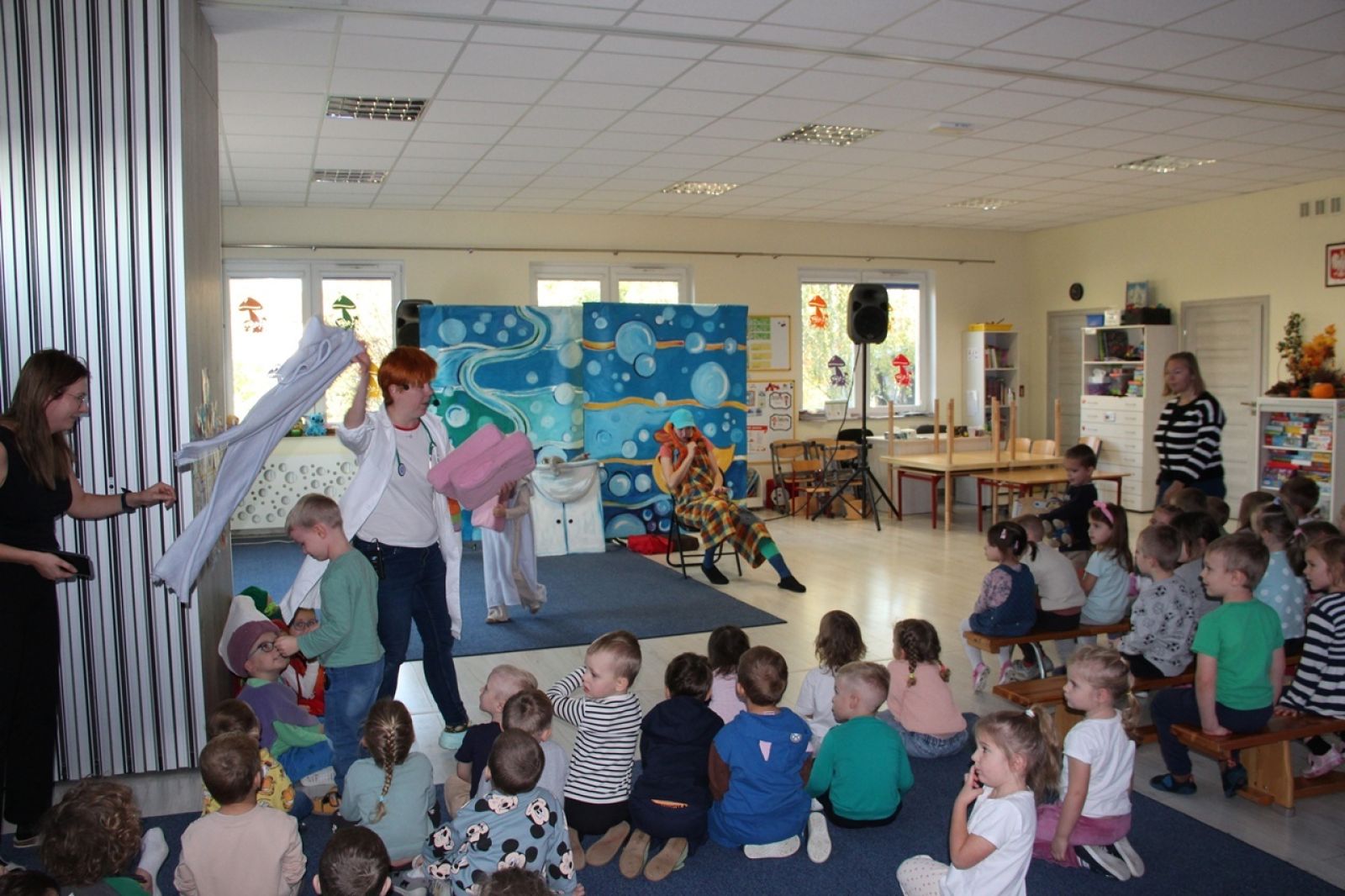 21 października do naszego przedszkola zawitał toruński Teatr Magmowcy ze spektaklem: „W zdrowym ciele zdrowy duch”. Aktorzy zaprezentowali sztukę, która łączy dobrą zabawę z ważnym przekazem edukacyjnym. Przedstawienie, skierowane do dzieci w wieku przedszkolnym i wczesnoszkolnym, w lekki i przystępny sposób uczy najmłodszych zasad higieny i zdrowego stylu życia.